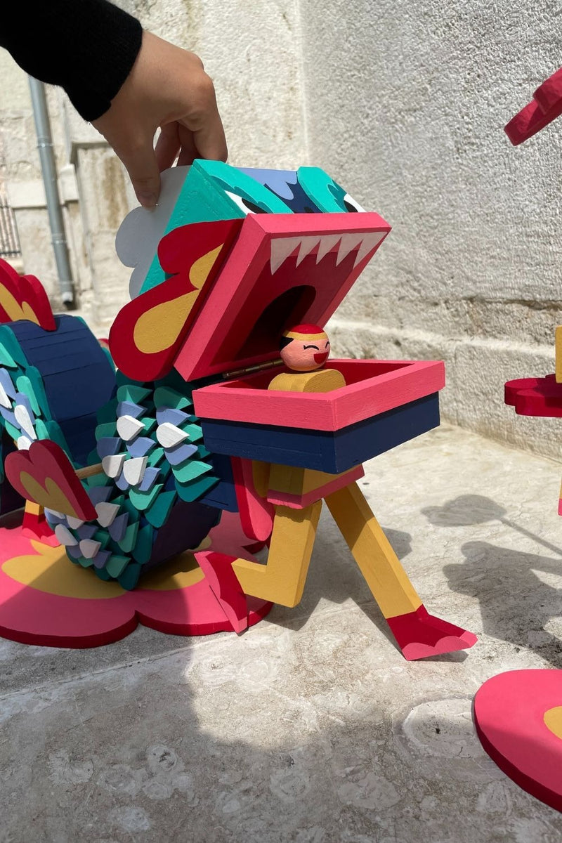 Oldukça keyifli 4 yılın ardından üniversite için grafik tasarım bölümünü seçmeye karar verdim. Sanıyorum ki ortaokulda konulara bağlı olarak yaptığım resimlerin etkisi bunda büyüktü. Belki de afiş mantığında olduğu için, dikey karton kağıda pastel boyayla çalışmalar yapıyordum. Ardından grafik bölümünü kazandım. Eskişehir Anadolu Üniversitesi Güzel Sanatlar Fakültesi’nde 5 yıl okudum. Bu 5 yıl içerisinde mezun olduktan sonra ne yapacağıma karar vermekle geçti. Babaannemle denediğimiz küçük heykeller, babamın oyuncak ve ahşap tutkusu, aldığım grafik tasarım eğitimi ve İzmir’in renkleri benim zevkim üzerimde epey etkili oldu. 3. yılımdan sonra aldığım proje ödevlerini de artık kendi işlerime adapte etmeye çalışarak, kendim için daha keyifli hale getirmeye başladım ve bu dönemin başlamasıyla birlikte ilk işlerimi öğrenciyken almaya başladım. Mezun olduktan sonra kendi işlerime iyice ağırlık verdim. Kendimi her anlamda geliştirmeye çalıştım. Sünger gibi bilmek istediğim her bilgiyi, ilgi alanımlarımla ilgili her şeyi çektim. Şimdi ise biriktirdiğim bu şeyleri olabildiğince sergilemeye çalışıyorum.