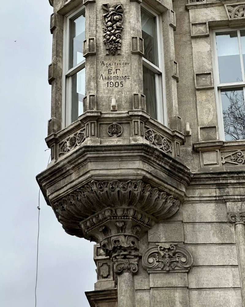 Art Nouveau, Neo Klasik ve Neo Barok etkilerin bir arada kullanıldığı cephe, Karaköy–Pera hattının çok kültürlü mimari dilini görünür kılar.