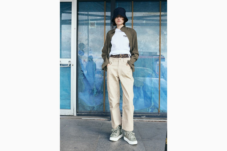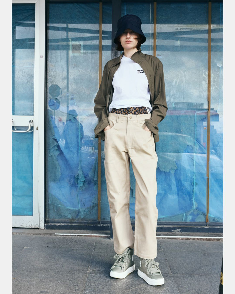 RAINS Mito overshirt, yalın formu ve teknik duruşuyla görünümü netleştirirken; Converse Chuck Taylor All Star Elements bot, hava koşullarına uyum sağlayan yapısıyla kombinin temelini oluşturuyor. RAINS bucket hat ise işlevsel tasarımıyla bütünlüğü tamamlıyor.