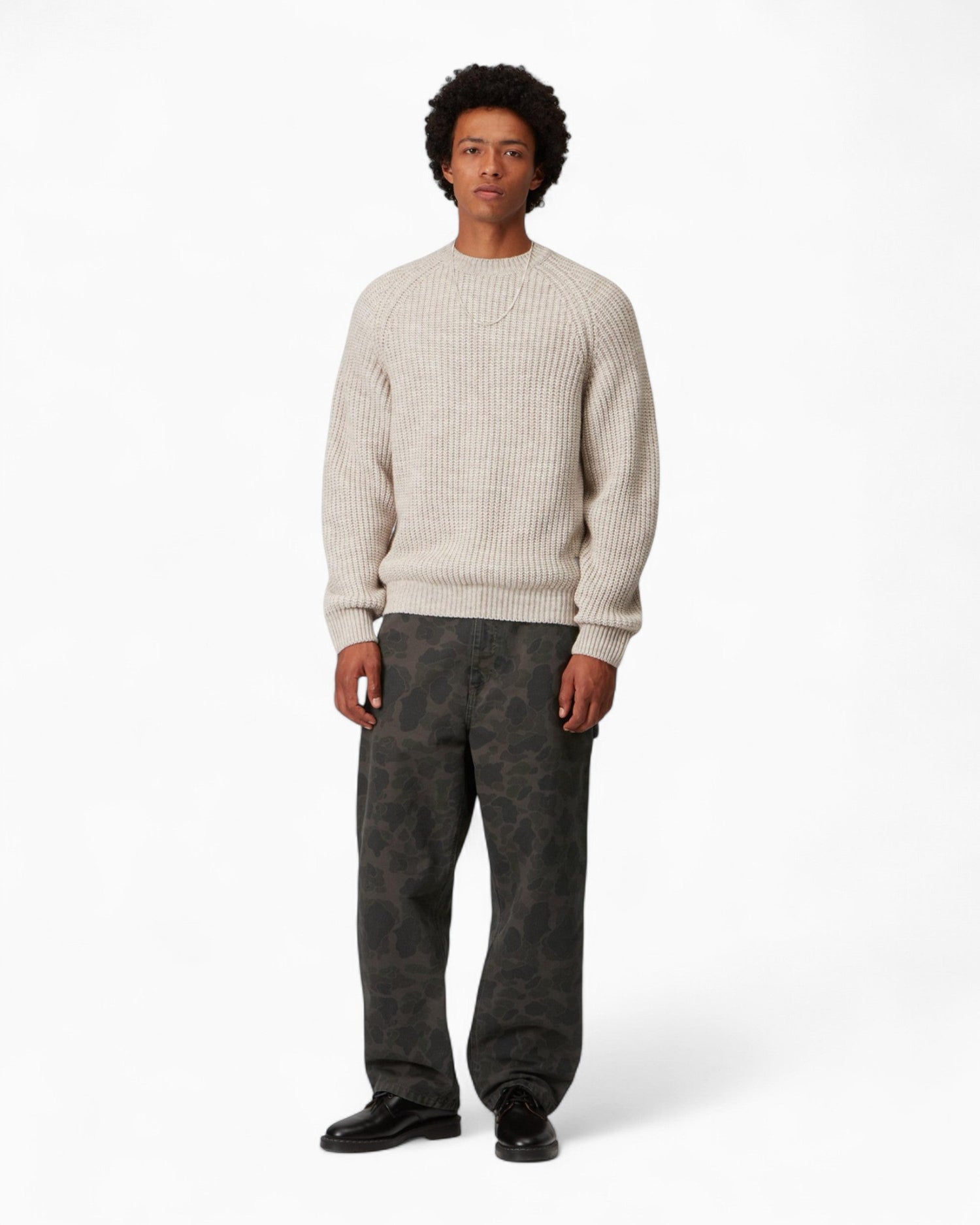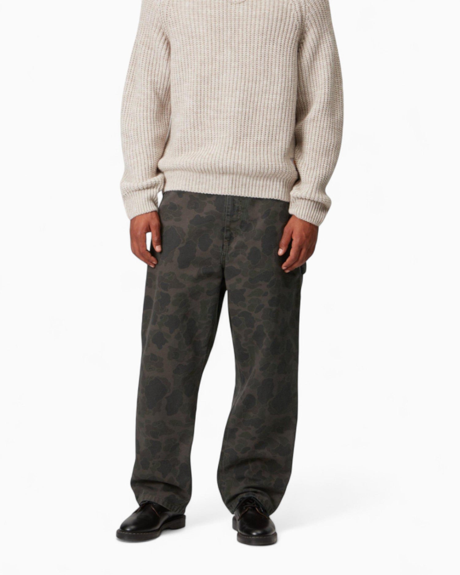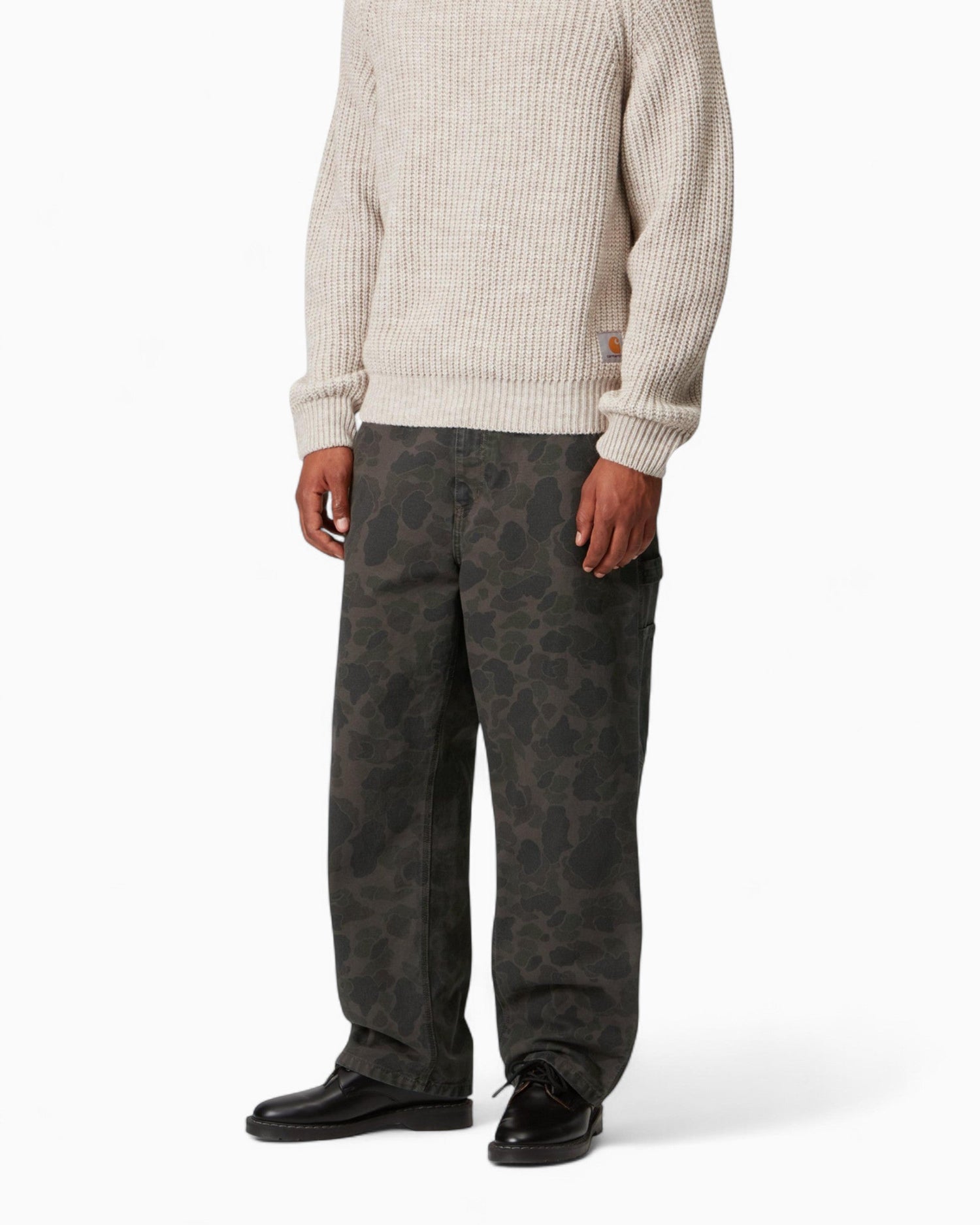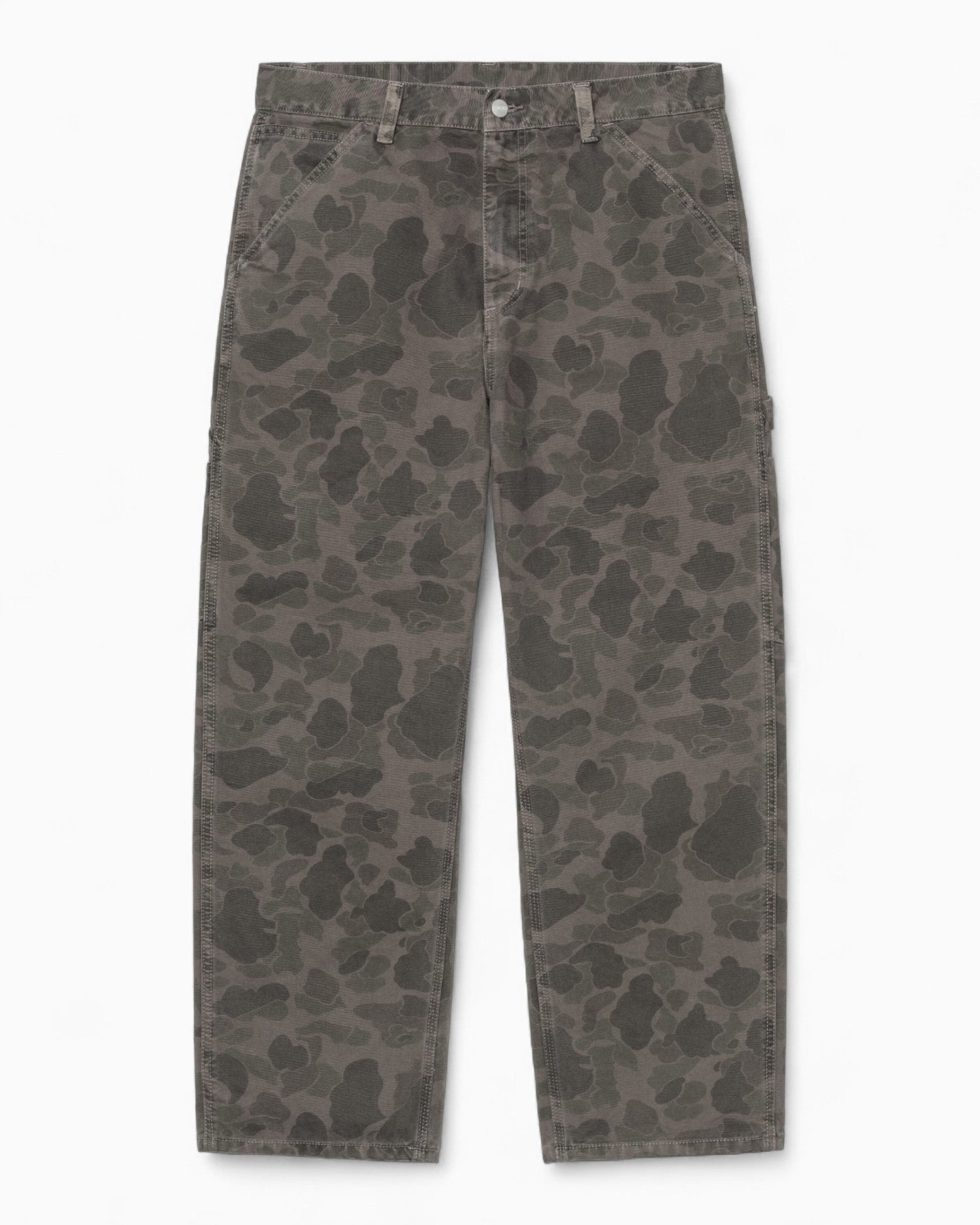 Duck Single Knee Pant, orta ağırlıkta pamuk kanvastan üretilmiş, rahat ve hafif daralan kesimiyle gün boyu konfor sunan bir modeldir. Tüm yüzeye yayılan kamuflaj deseni sayesinde karakterli bir görünüm verir. Garment-dyed işleminden geçtiği için hem daha yumuşak bir dokuya hem de daha zengin renk tonlarına sahiptir.
