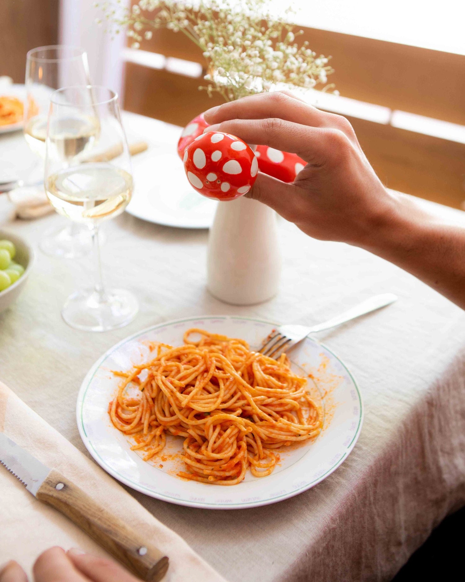 Mutfak masanızda minik bir sanat eseri gibi yer alacak bu mantar formundaki Amanita Mantar Tuzluk Biberlik, klasik tuz-karabiber öğütücü algısını yeniden yorumluyor. Seramik yapısıyla hem fonksiyonel hem dekoratif bir detay olarak dikkat çekiyor.
