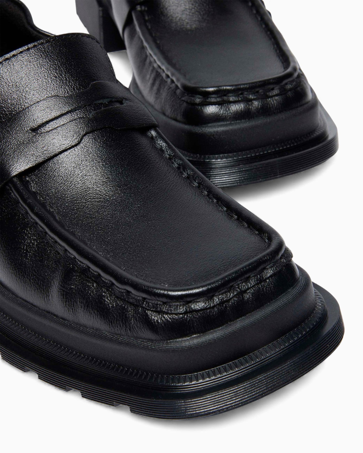 - Kare burunlu, büzgü detaylı slip-on loafer