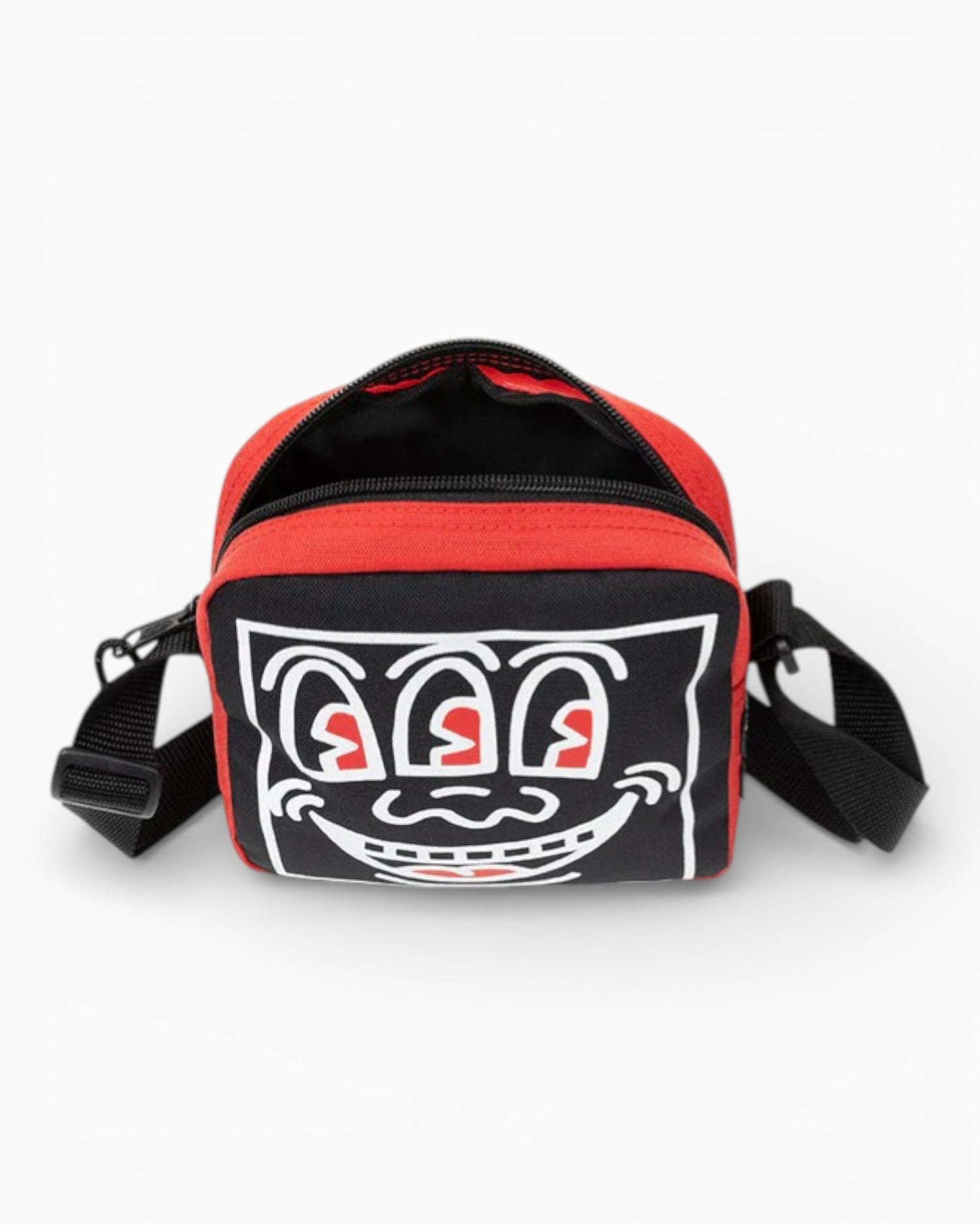 Keith Haring’in 3 Eyes deseninden ilham alan bu kompakt crossbody çanta, kent kültürünü ve özgür ifadeyi fonksiyonel bir tasarımla buluşturuyor. Günlük kullanım için ideal boyutuyla temel eşyalarını düzenli şekilde taşımanı sağlarken, ayarlanabilir askısı sayesinde omuzda ya da çapraz rahat bir kullanım sunar. Su itici kumaşı hafif yağmura karşı koruma sağlar; fermuarlı ana bölmesi ise eşyalarını güvenle saklamaya yardımcı olur. Şehir temposuna uyum sağlayan karakterli bir tamamlayıcı.
