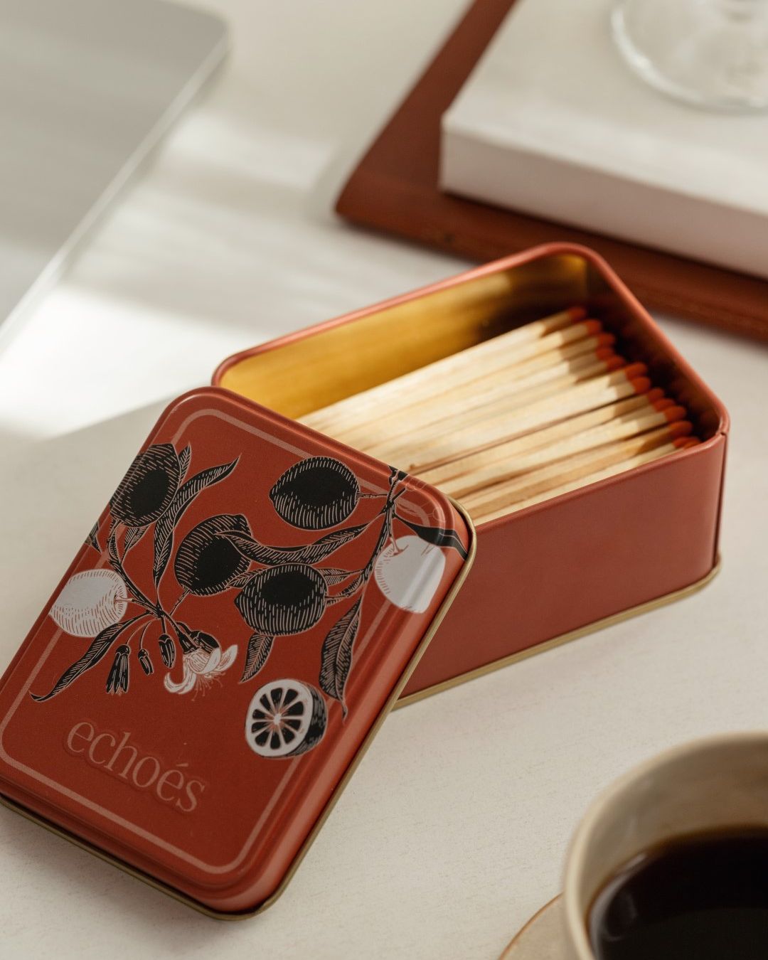 Sıcak bir ev ortamının huzurunu yansıtan “Feed Your Soul” büyük kibrit kutusu, yumuşak tonları ve zarif tasarımıyla her köşeye sıcak bir dokunuş katar. Şık teneke kutusunun içinde yer alan uzun kibritler, mum veya tütsü yakma anlarınıza nostaljik bir keyif kazandırır. Dekoratif görünümüyle yalnızca işlevsel değil, aynı zamanda estetik bir detay olarak da öne çıkar.