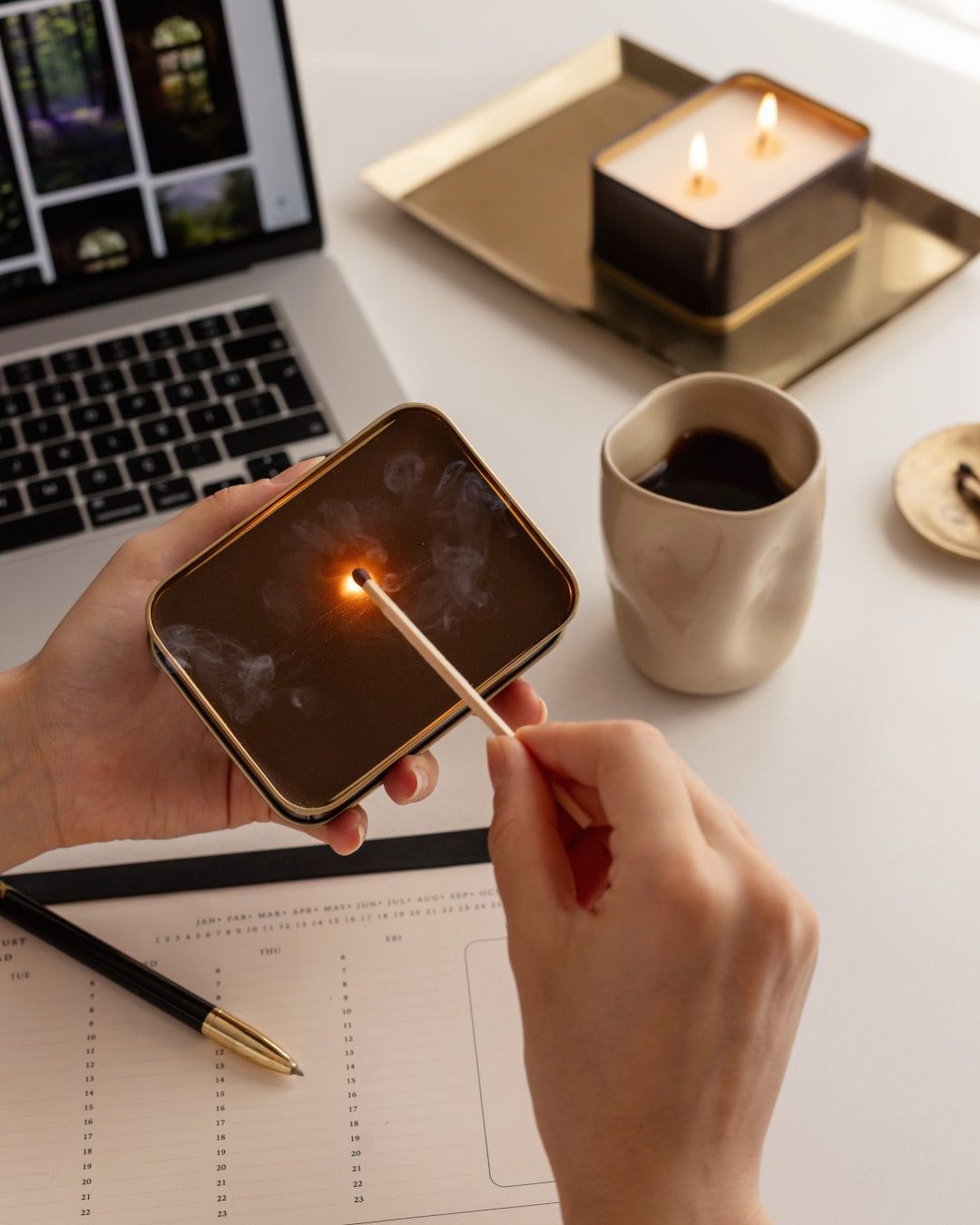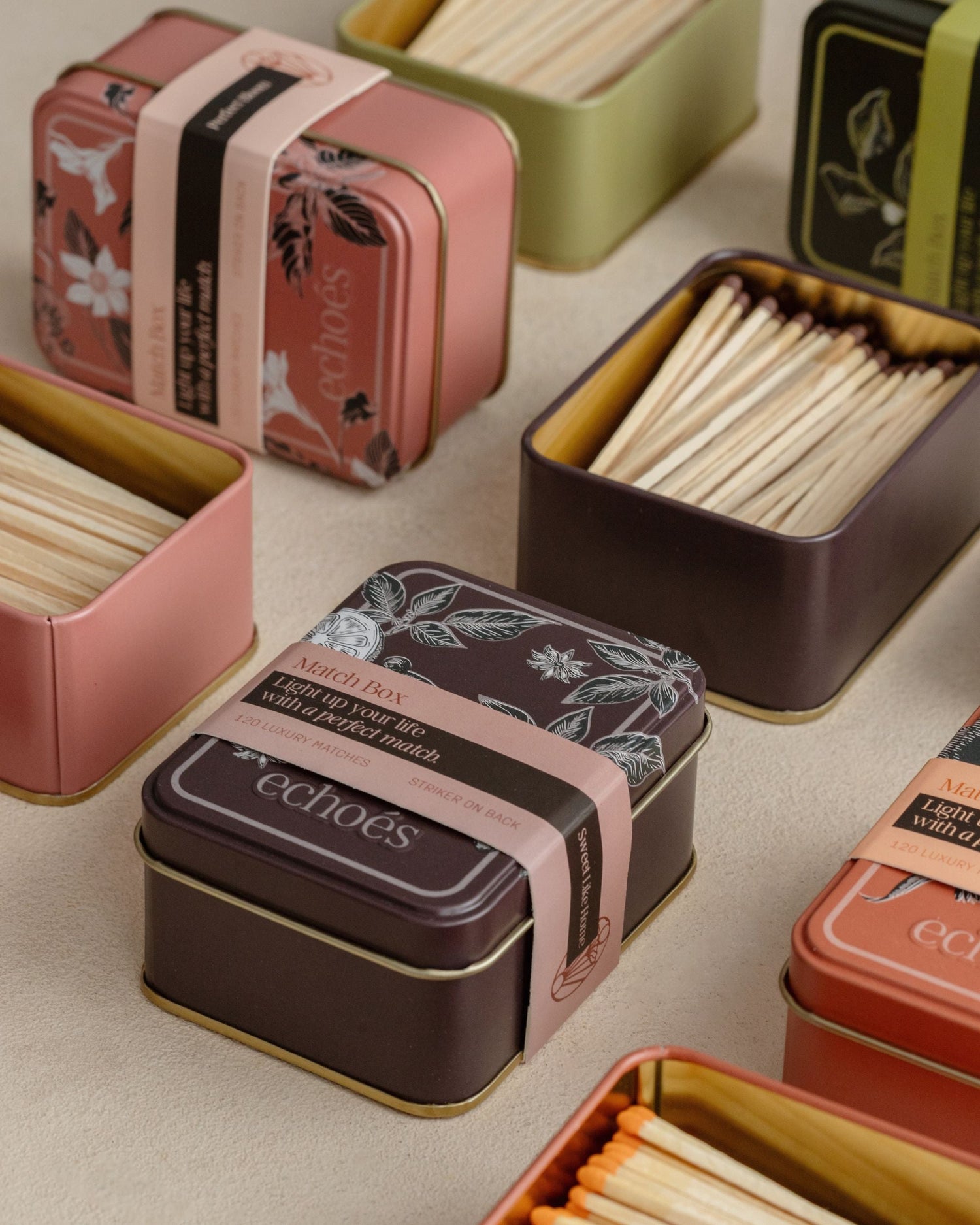 Sıcak bir ev ortamının huzurunu yansıtan “Sweet Like Home” büyük kibrit kutusu, yumuşak tonları ve zarif tasarımıyla her köşeye sıcak bir dokunuş katar. Şık teneke kutusunun içinde yer alan uzun kibritler, mum veya tütsü yakma anlarınıza nostaljik bir keyif kazandırır. Dekoratif görünümüyle yalnızca işlevsel değil, aynı zamanda estetik bir detay olarak da öne çıkar.
