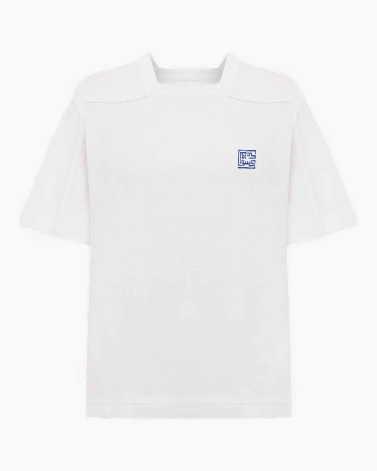- Göğüsteki mavi logo baskısıyla minimal imza detay