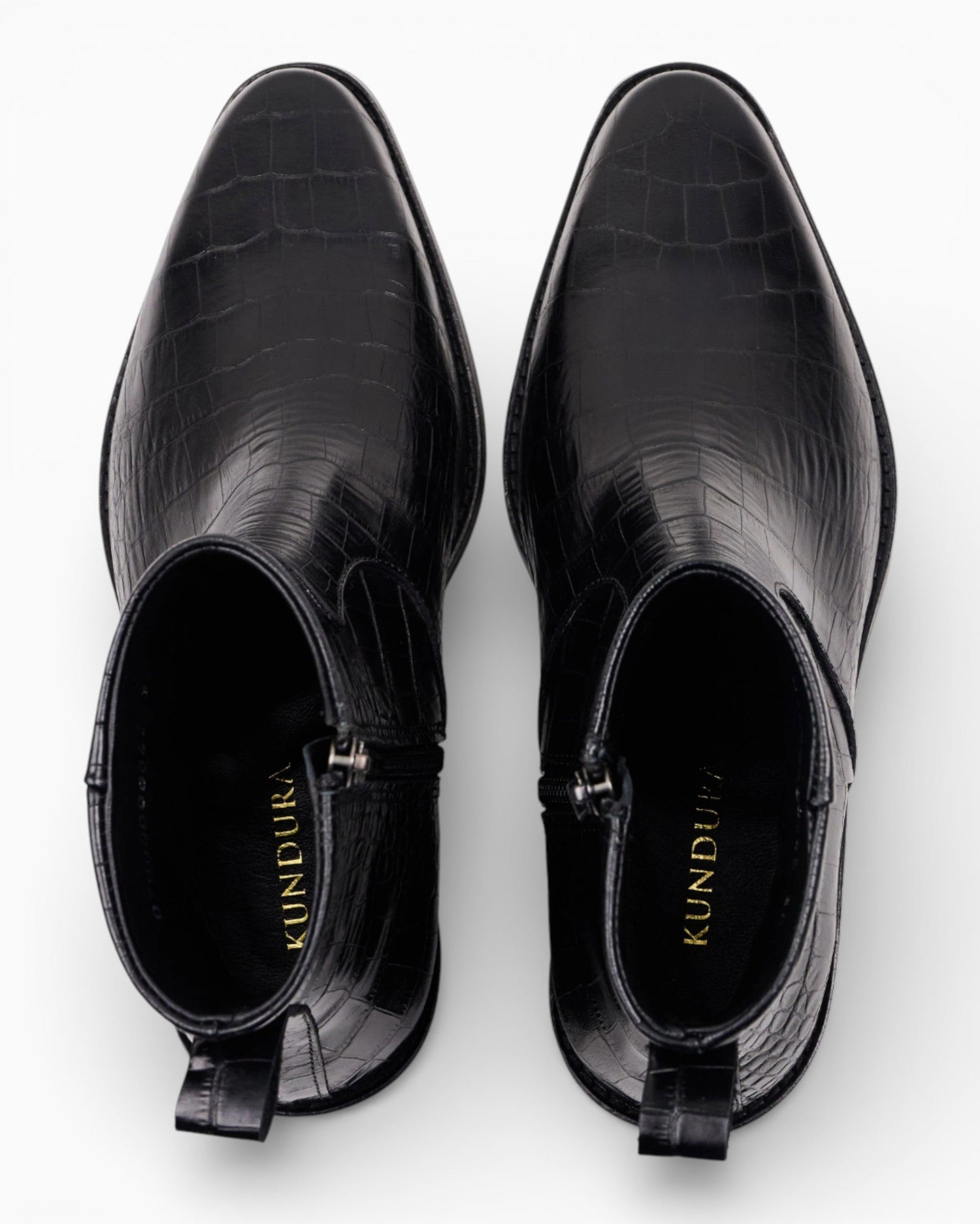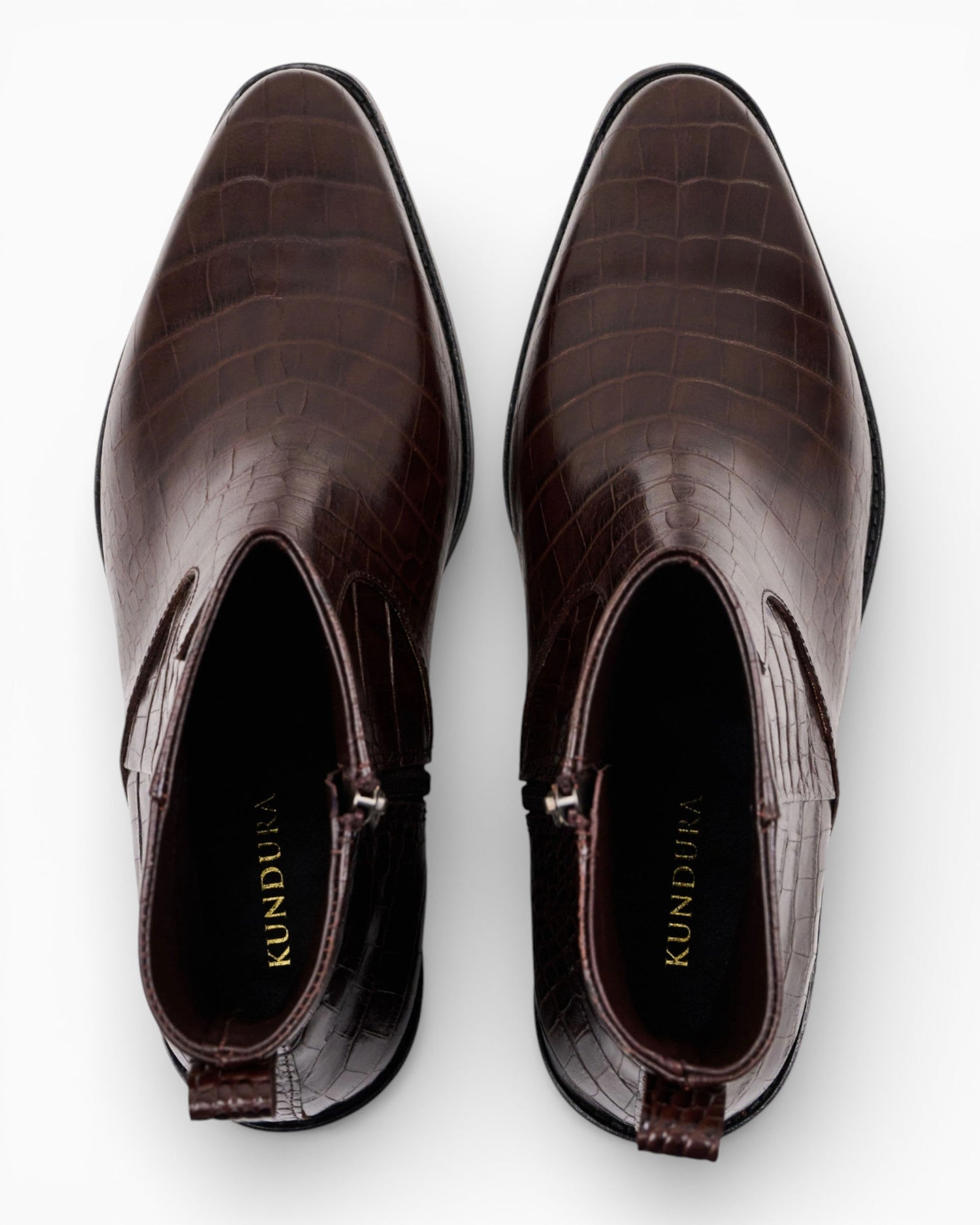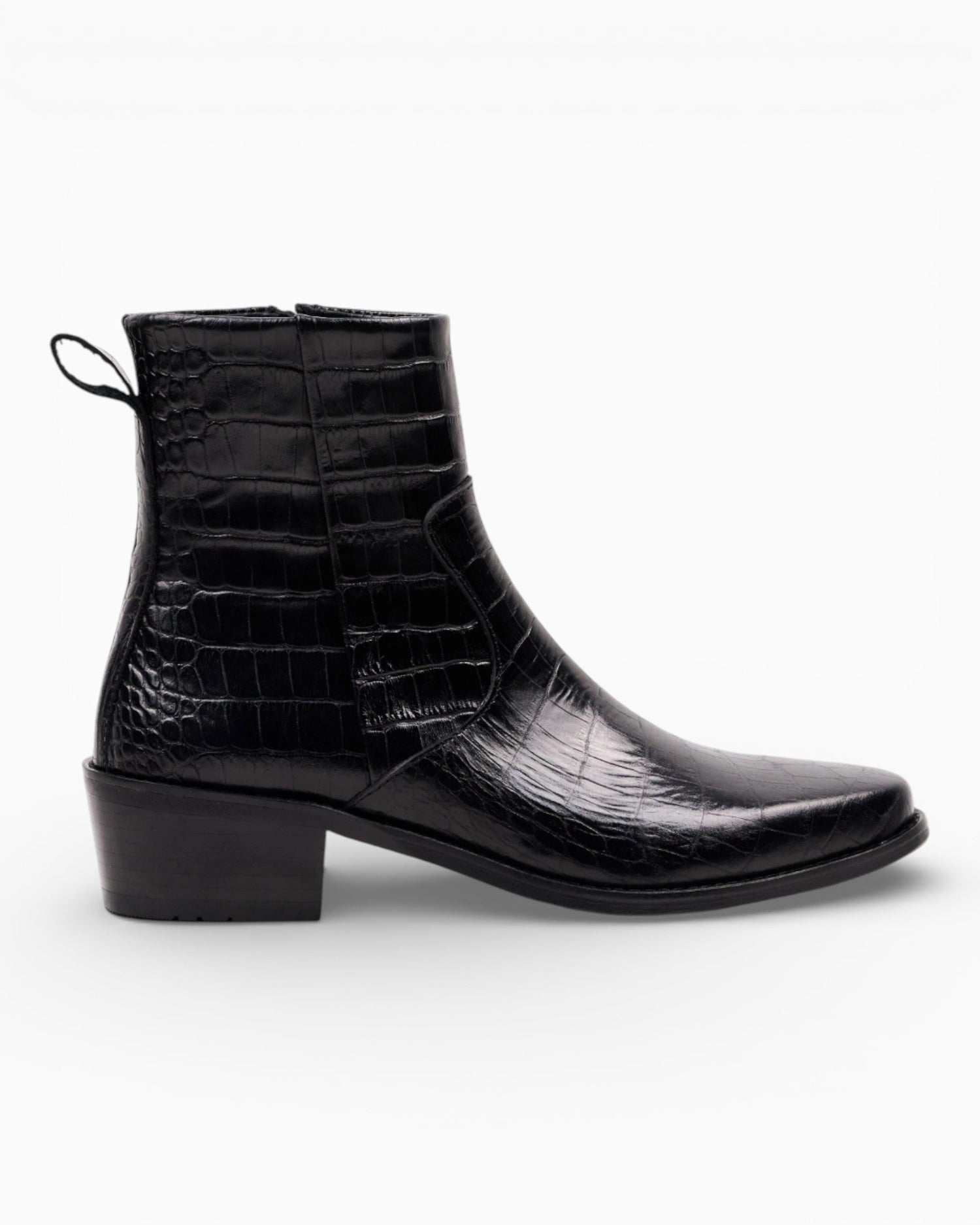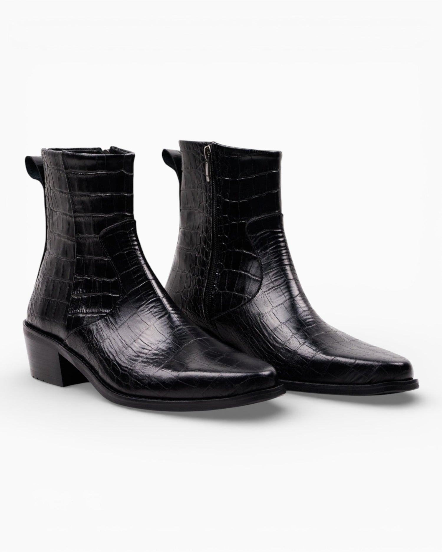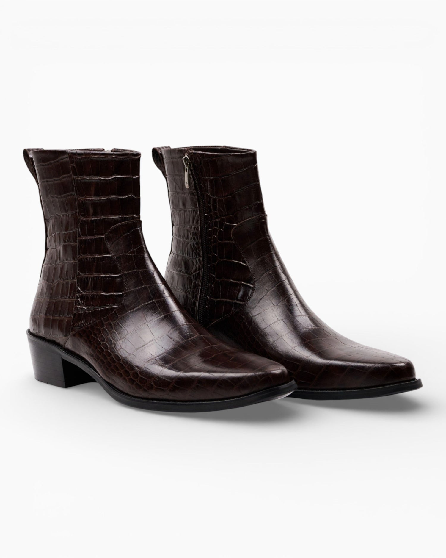Crocodile Kovboy Bot, İstanbul’da İstanbullu ustalar tarafından sevgiyle üretilen, zamansız kovboy siluetini modern bir yorumla buluşturan güçlü bir model. Krokodil baskılı %100 dana derisi, bota iddialı ve karakterli bir duruş kazandırırken; el yapımı kösele tabanı ve tamamen deri astarıyla hem dayanıklılık hem de konfor sunar.