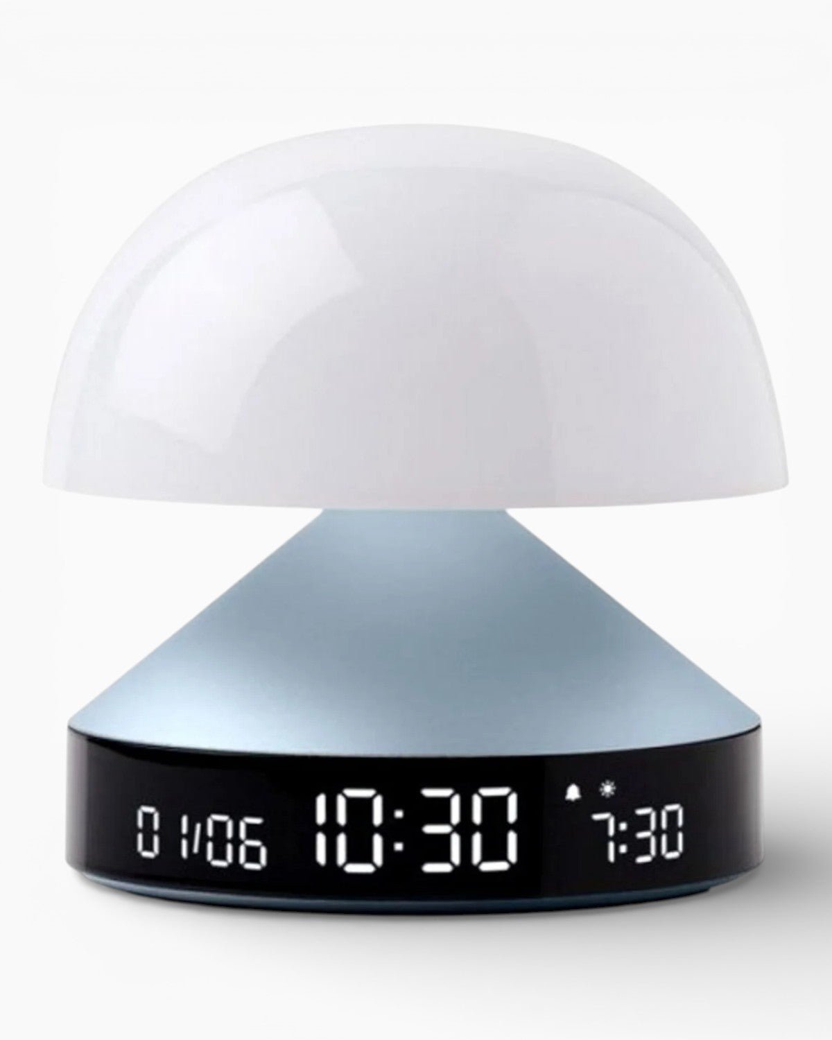 Kompakt şekli, alüminyum tabanı ve yüksek kaliteli ekranıyla Mina Sunrise, komodininizi tamamlayacak ve kolay etkileşim kurulacak şekilde tasarlanmıştır. Lambanın üst kısmına basmak ışığı açar/kapatır, 9 LED rengi arasından seçim yapar, parlaklığı ayarlar veya devam eden alarmı durdurur. İster yatakta kitap okuyun, ister uyumadan önce sakinleştirici bir aydınlatma ortamı yaratın, ister sabah dinç bir şekilde uyanın, Mina Sunrise her şeyi şık bir şekilde yapmak için doğru cihazdır.