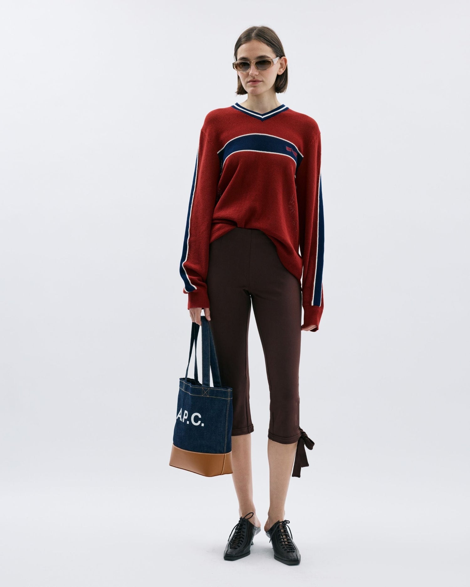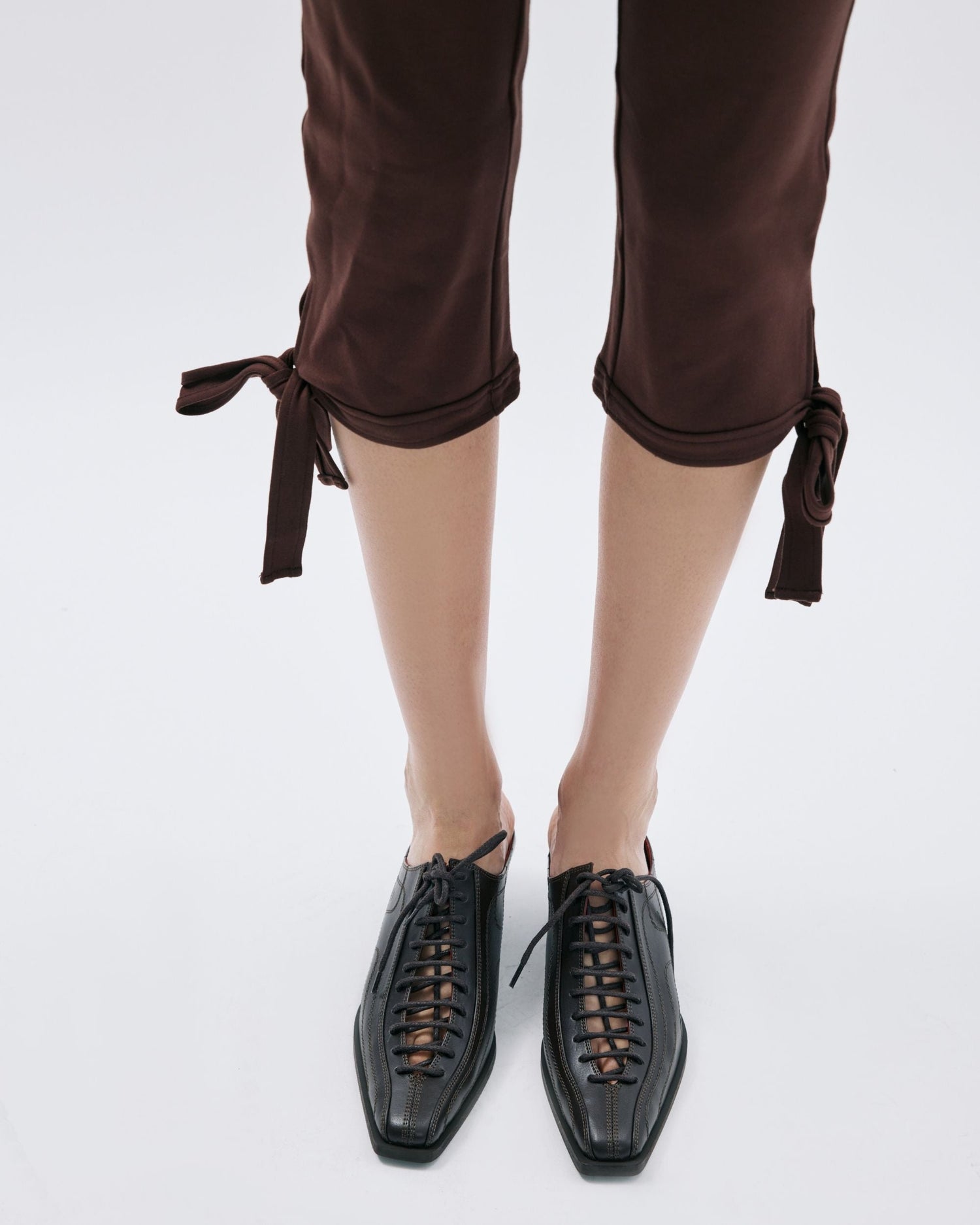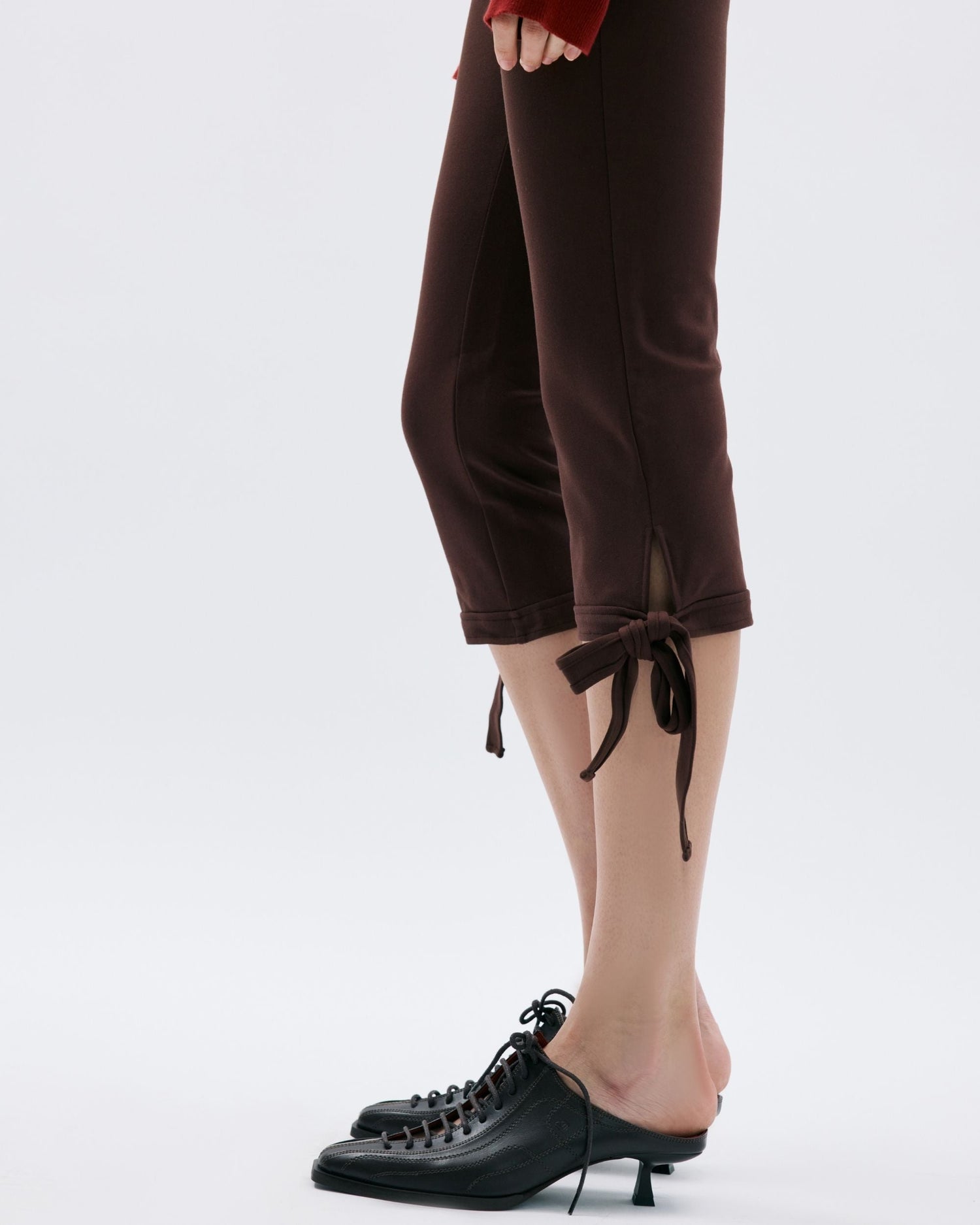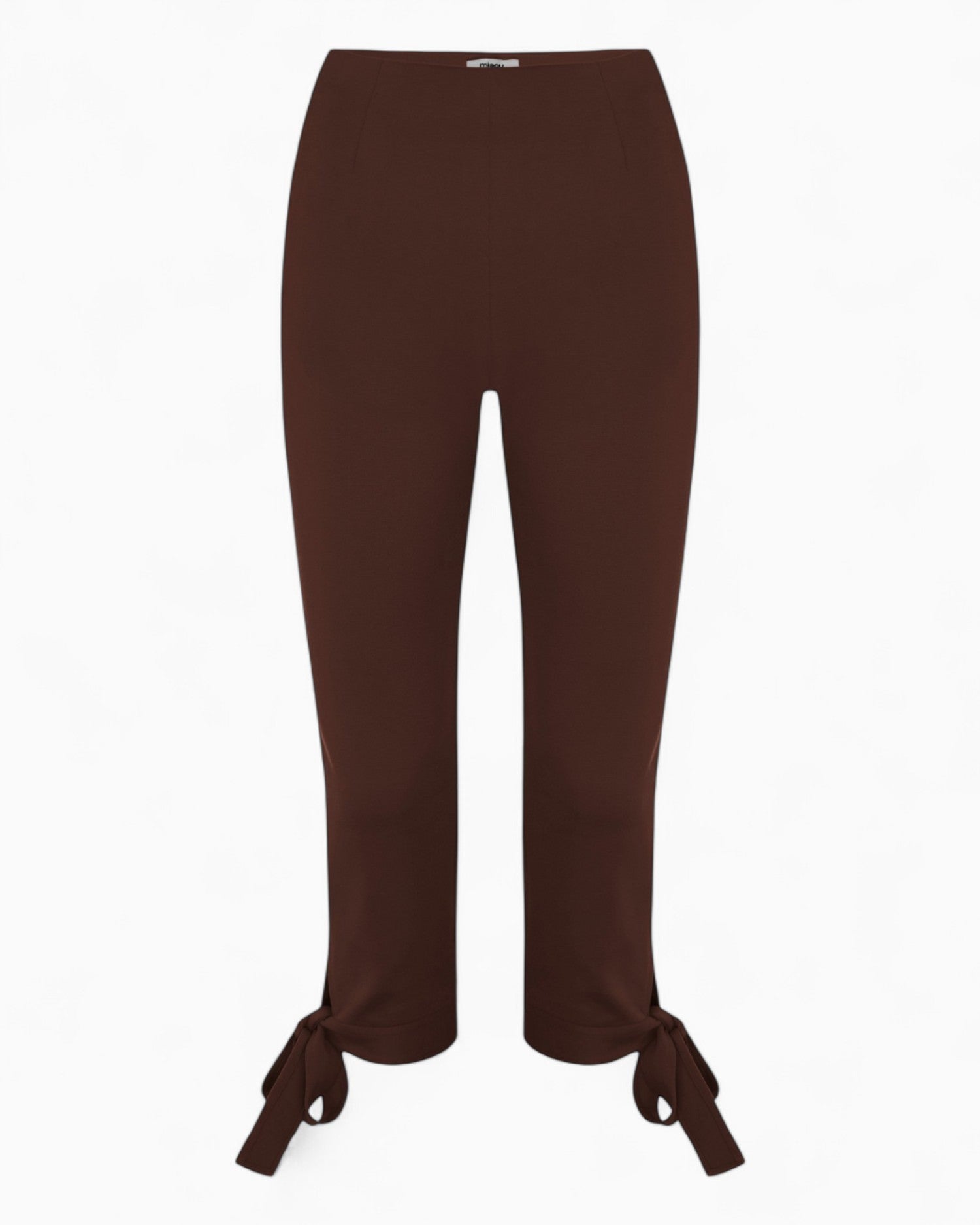 Emma Capri, Miaou’nun “soft & snatching BODY” kumaşını kullanarak hem akıcı bir düşüş hem de vücuda oturan kusursuz bir form sunar. Bel hizasında oturan düşük rise kesimi ve yanlarda zarif bağcık detaylarıyla her adımına hareket katar. Vintage enerjik capri silueti, zamansız kahve tonuyla her kombine sofistike bir dokunuş sağlar.