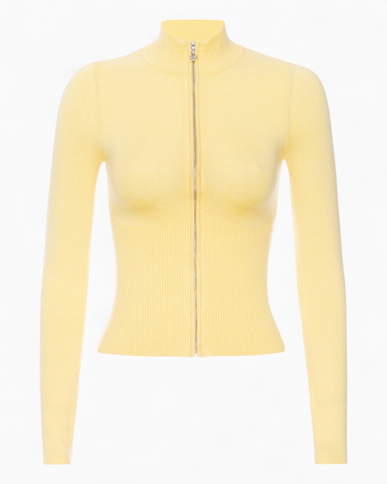 Vlad Zip Up – Butter, Miaou’nun yumuşak dokunuşlu Soft Knit kumaşıyla, serin havalarda bile teni okşayan bir ısı sunuyor. İnce telli dokusu ve hafif kalınlığı sayesinde tek başına üst olarak kullanılabiliyor; mini tişörtlerle katman oluşturduğunda ise stilini tamamlıyor.