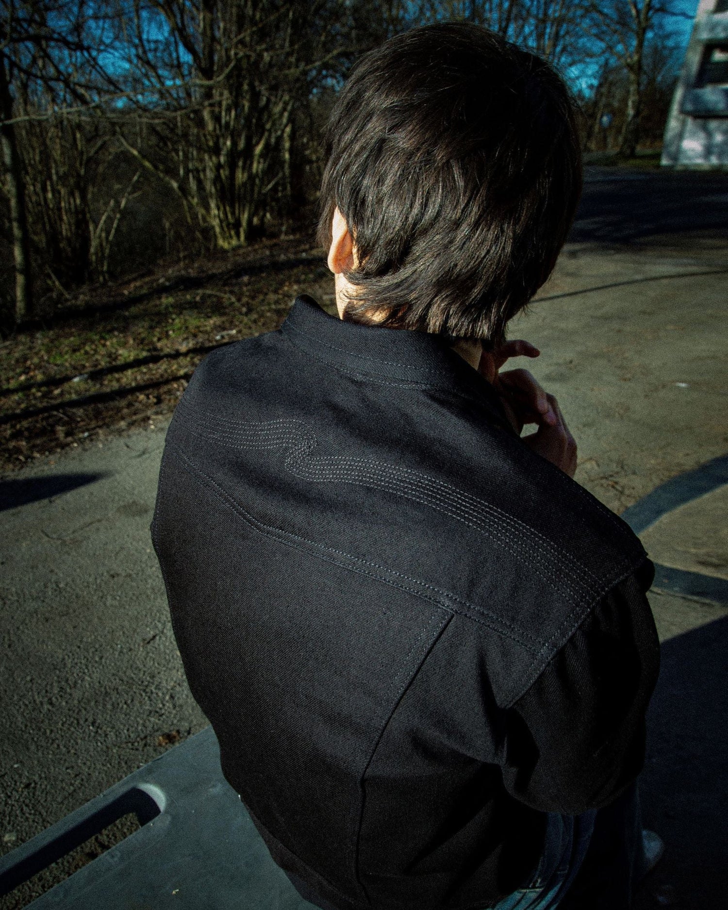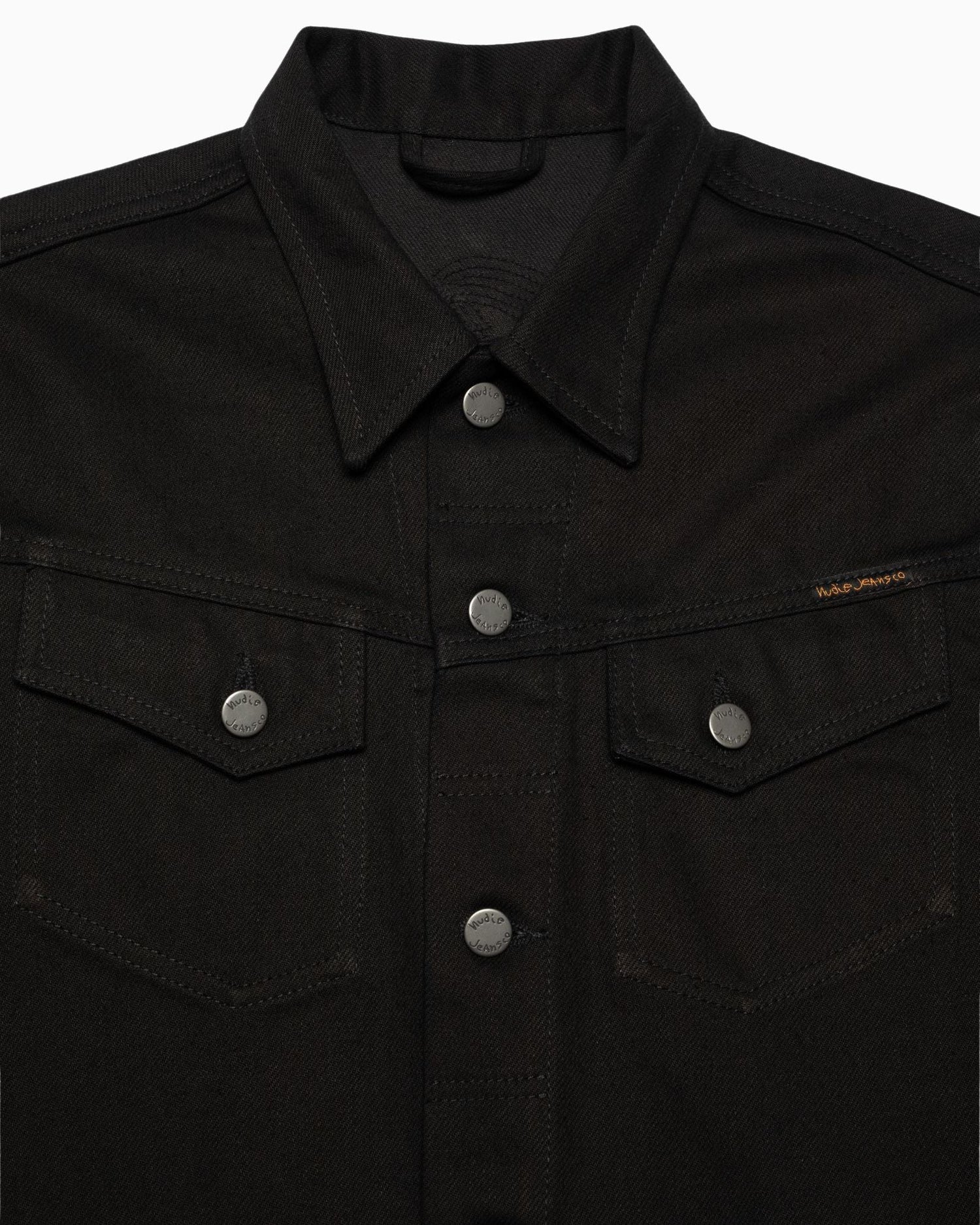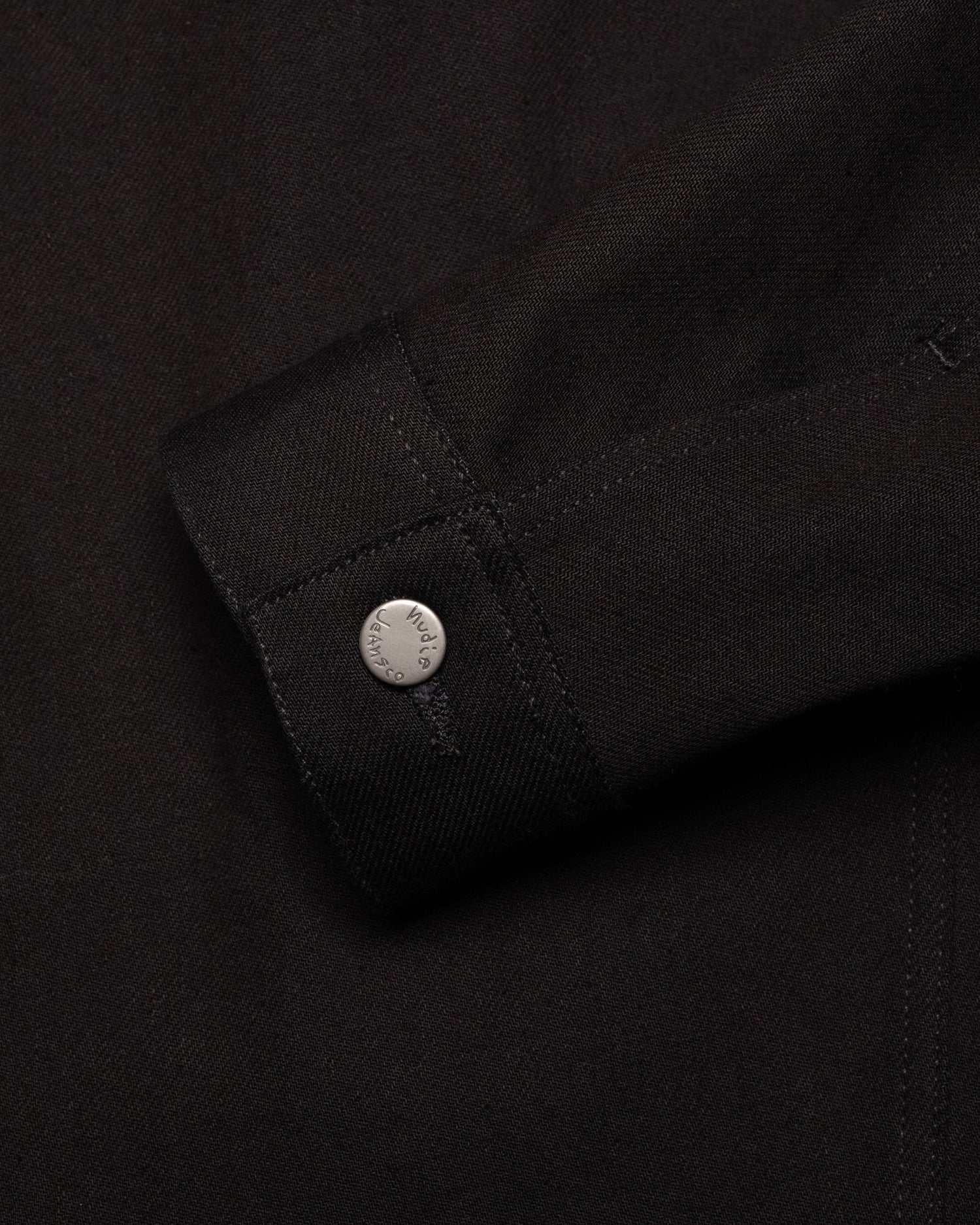 Nudie Jeans’in klasiği Conny, imza niteliğindeki asimetrik göğüs cepleri ve arka roba nakışı ile öne çıkan slim fit bir denim cekettir. Pitch-black “black overdyed black denim” kumaştan üretilen Dry Black Tar, yumuşak bir dokuya ve derin siyah bir tona sahiptir. Zamanla bu siyah ton, griye dönük yumuşak geçişlerle solarken, ring-spun denim yapısı hafif dikey çizgililik gösterir. Kullanım süresince bu çizgililik daha belirgin hale gelirken, yıkamalarla birlikte ince mermer efektleri ortaya çıkar ve siyah ile gri tonların birleştiği zengin, gelişen bir doku oluşur.