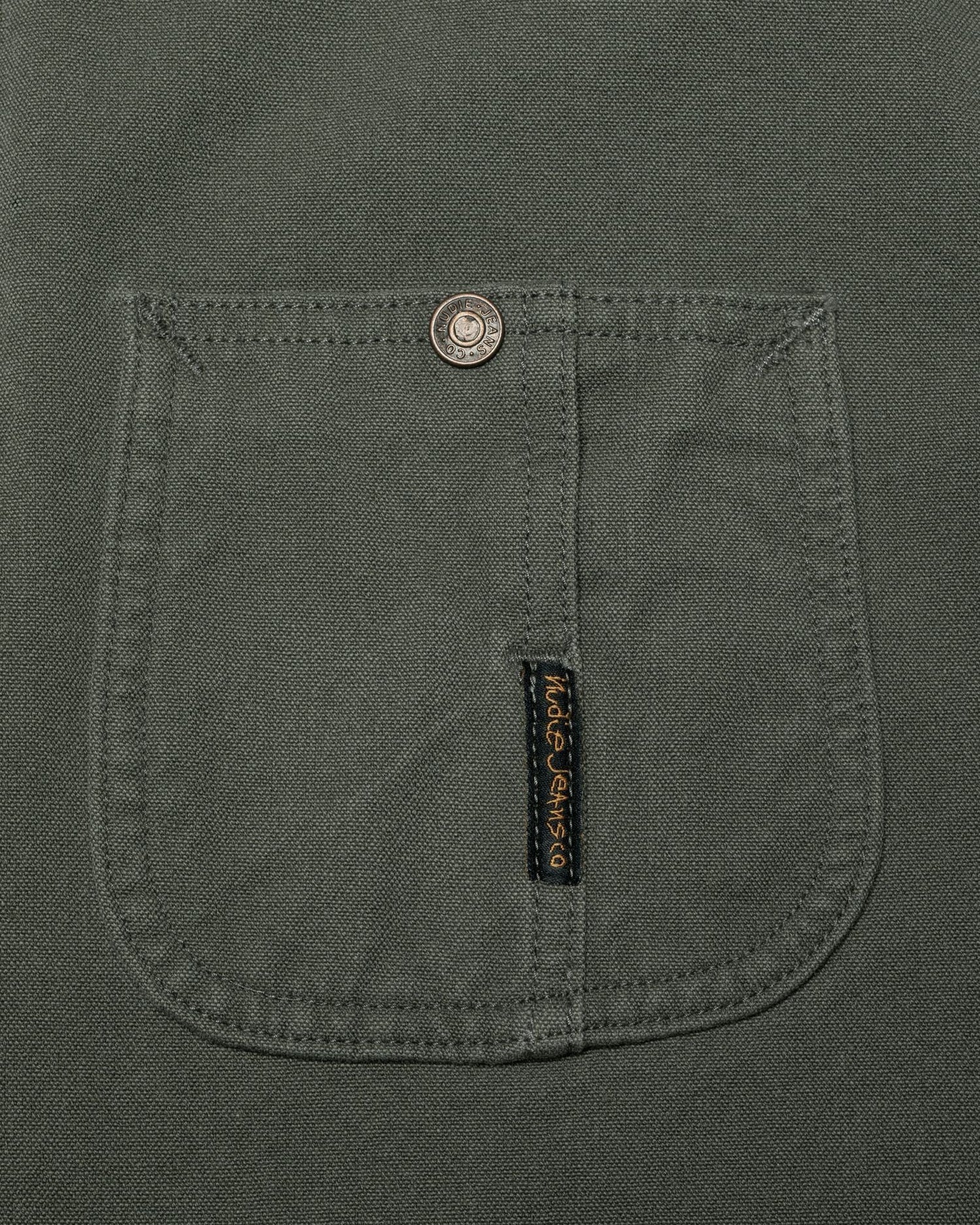 Howie modeli, klasik iş ceketinin özüne sadık kalarak geniş bir kalıpla tasarlanmıştır. “Duck Canvas” adını verdiğimiz, soluk çam yeşili tonlarında 2 katmanlı kanvas dokumadan üretilmiştir. Tonal dikişler ve bakır “Donut” düğmelerle tamamlanan bu model, 20. yüzyıl ortası vintage avcı giysilerinden esinlenirken iş giysisi estetiğini de yansıtır.