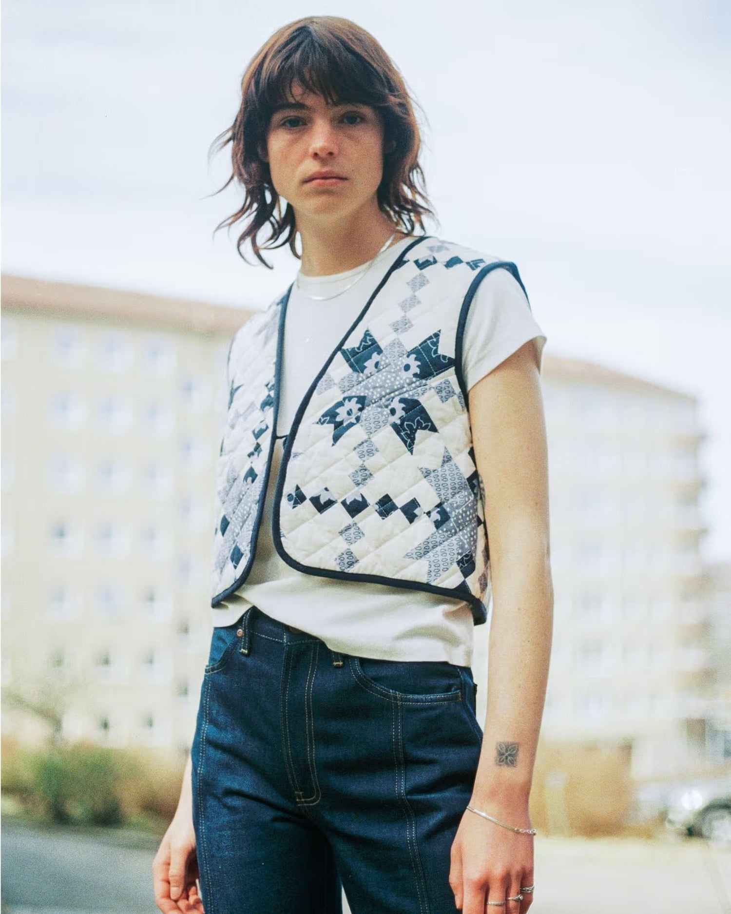 Lill modeli, organik ve Fairtrade pamuktan üretilmiş yumuşak bir düz dokumaya sahiptir. Mavi tonlardaki desen, geleneksel patchwork desenlerinden esinlenmiştir. Hafif polyester dolgusu, elmas desenli kapitone yüzey ile tamamlanmıştır. Koyu mavi balıksırtı biyelerle bitirilmiş olup, kutu formlu regular-fit kalıbı ile öne çıkar. Bu yeleği satın aldığınızda, adil yaşam ücretlerine katkımız olduğundan emin olabilirsiniz.