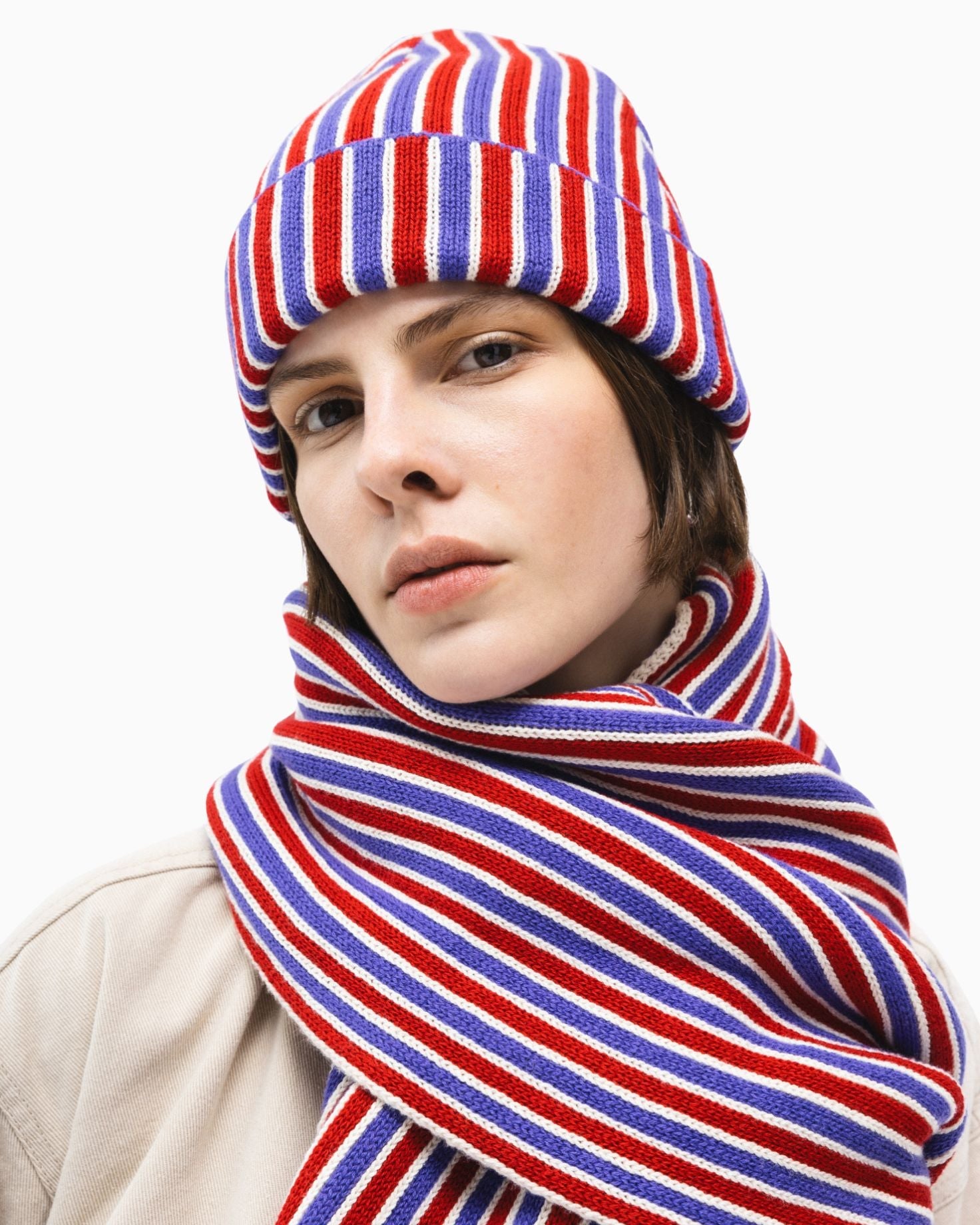 Cherry Çizgili Triko Atkı