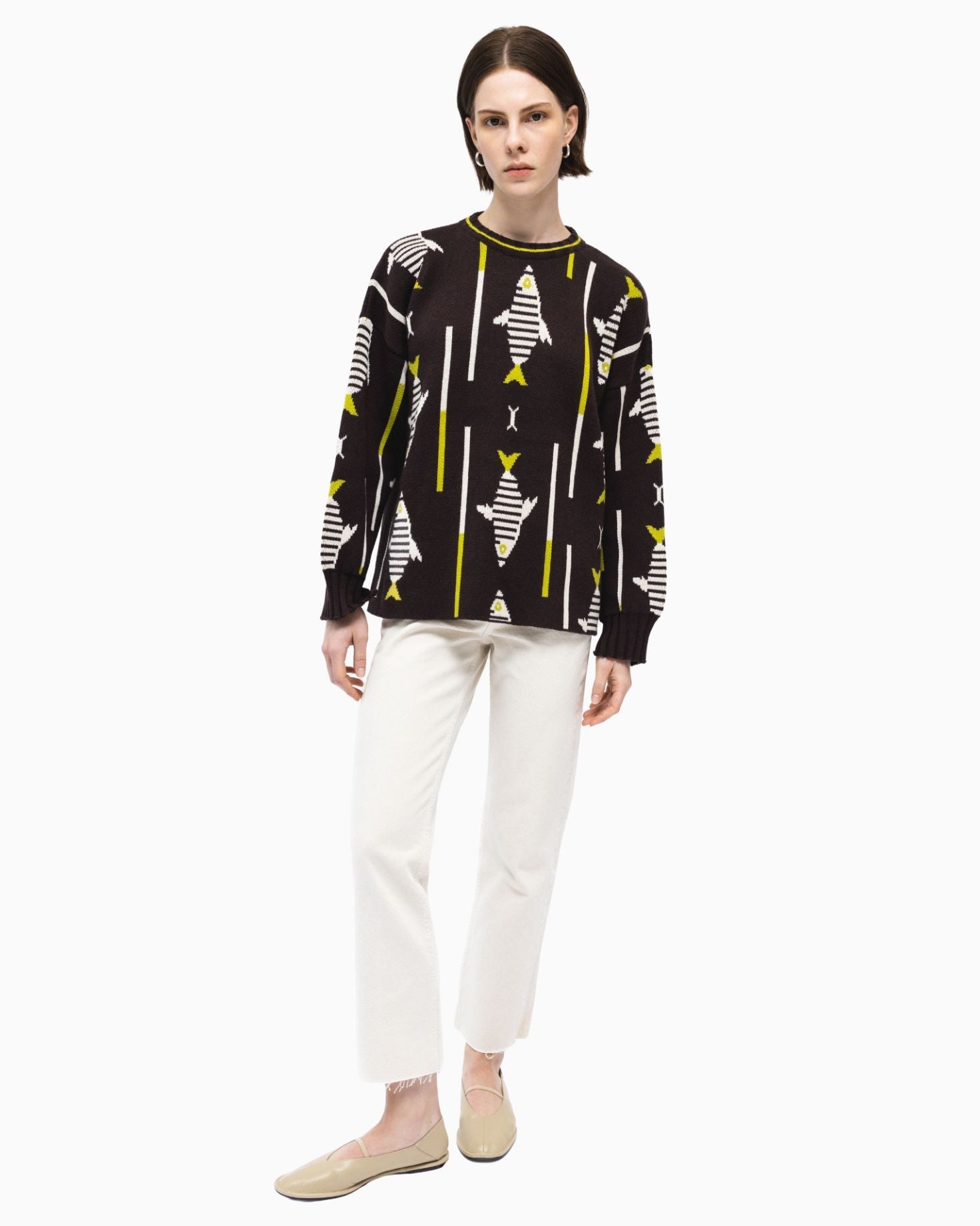 Salaş formu ve jakarlı dokusuyla Fish Oversize Triko Kazak, bisiklet yaka tasarımı ve oversize kalıbı ile konforu ve tarzı bir arada sunar. Günlük kullanıma uygun yapısıyla, tek başına dikkat çekici bir parça haline gelir.