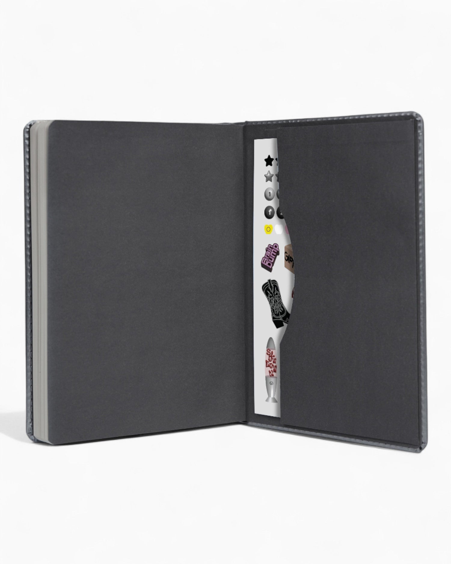 Western ruhu ve diskonun enerjisi bir araya geliyor: “Western Disco” defter, inekler ve erkek estetiğine takılmadan, türcülük ve cinsiyetçiliğe karşı duruşuyla yeni normları yeniden tanımlıyor. Sıcak tonlu, yüksek kaliteli 110 g Ivory kağıdı, mürekkebin sayfayı delmesini engeller. Güçlü dikişi sayesinde defter 180° açılarak tamamen düz durur.