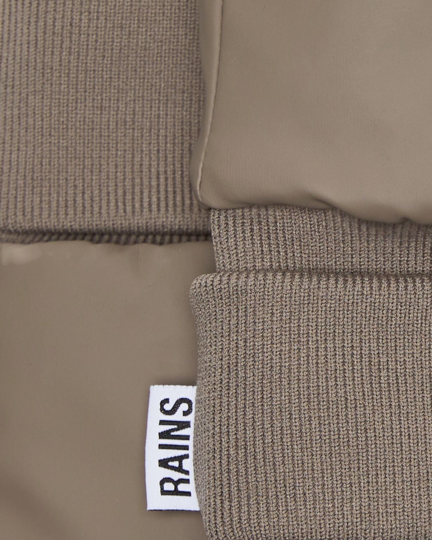 Trekker Mittens, Rains'in su geçirsem PU kumaşından üretilen, polar astar ve elastik bileklere sahiptir. Kışa dayanıklı işlevsellik ile iddialı bir siluetin birleşimidir.