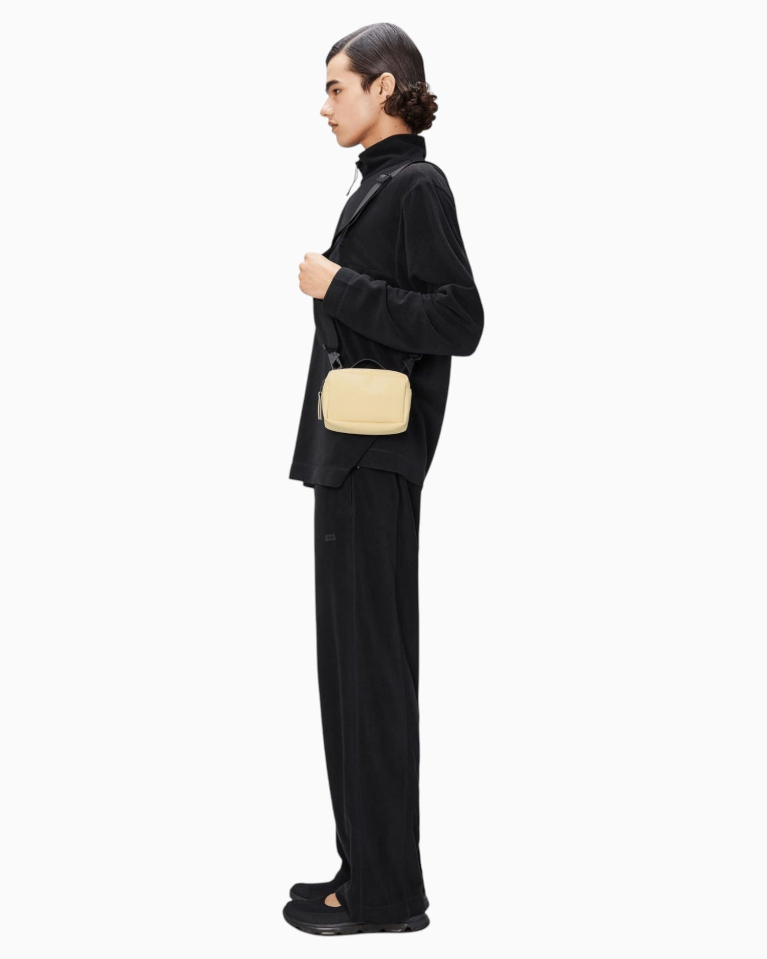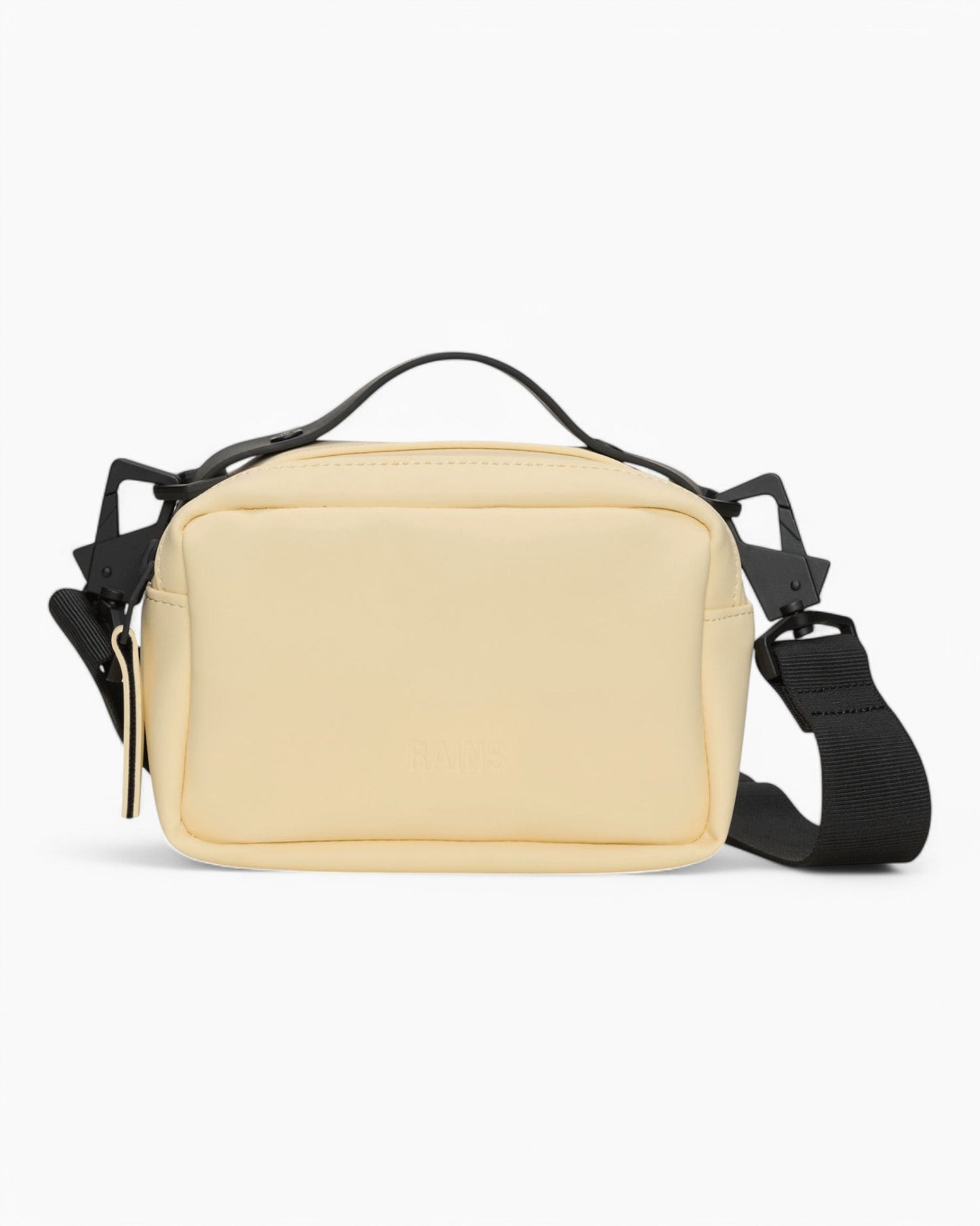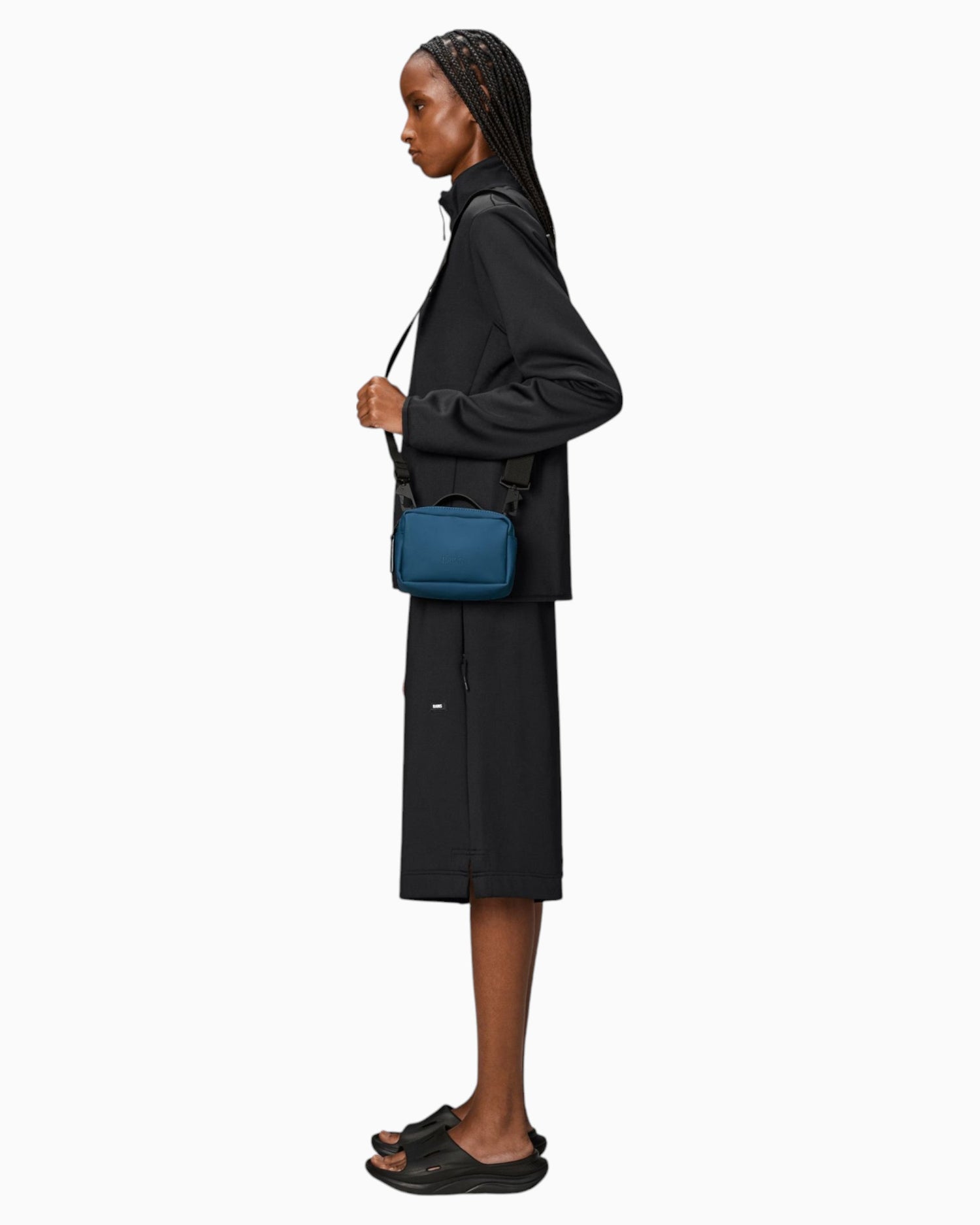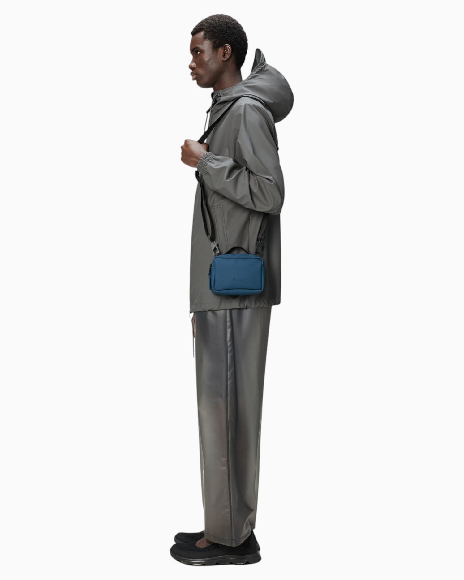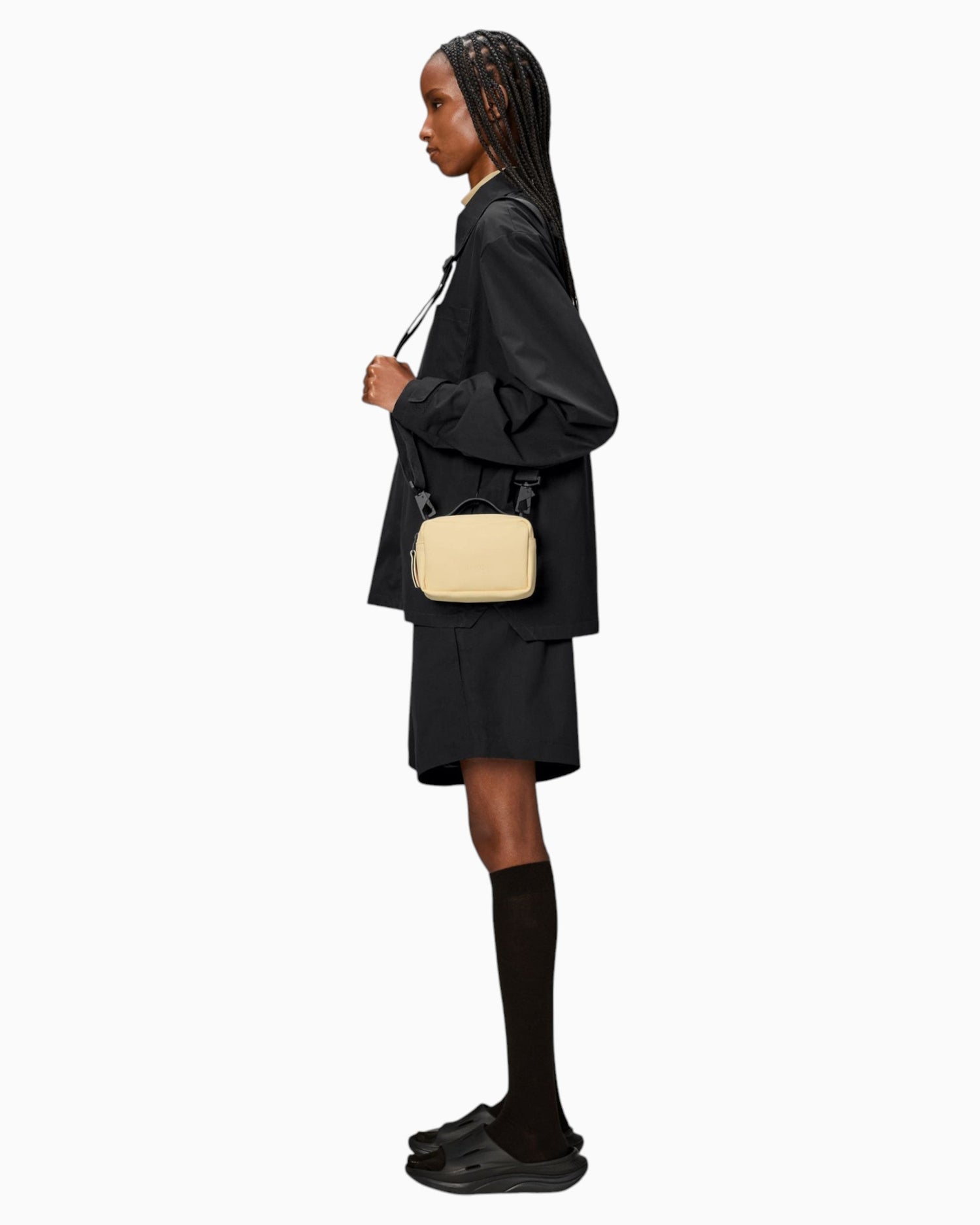 İkonikleşen suya dayanıklı pürüzsüz ve mat yüzeyli Rains kumaşından üretilen Box Bag Micro, Rains Box Bag'in küçültülmüş bir versiyonudur. Tasarım, omuzda, vücutta veya el çantası olarak taşınmak üzere tasarlanmış, temiz ancak işlevsel bir su geçirmez çanta sunar. Minimal kutulu silueti kolayca şekillendirilebilir ve küçük günlük eşyaları taşımak için ideal boyuttadır. Tasarım, karabinalarla bağlanan ayarlanabilir bir dokuma kayışla tamamlanmıştır.