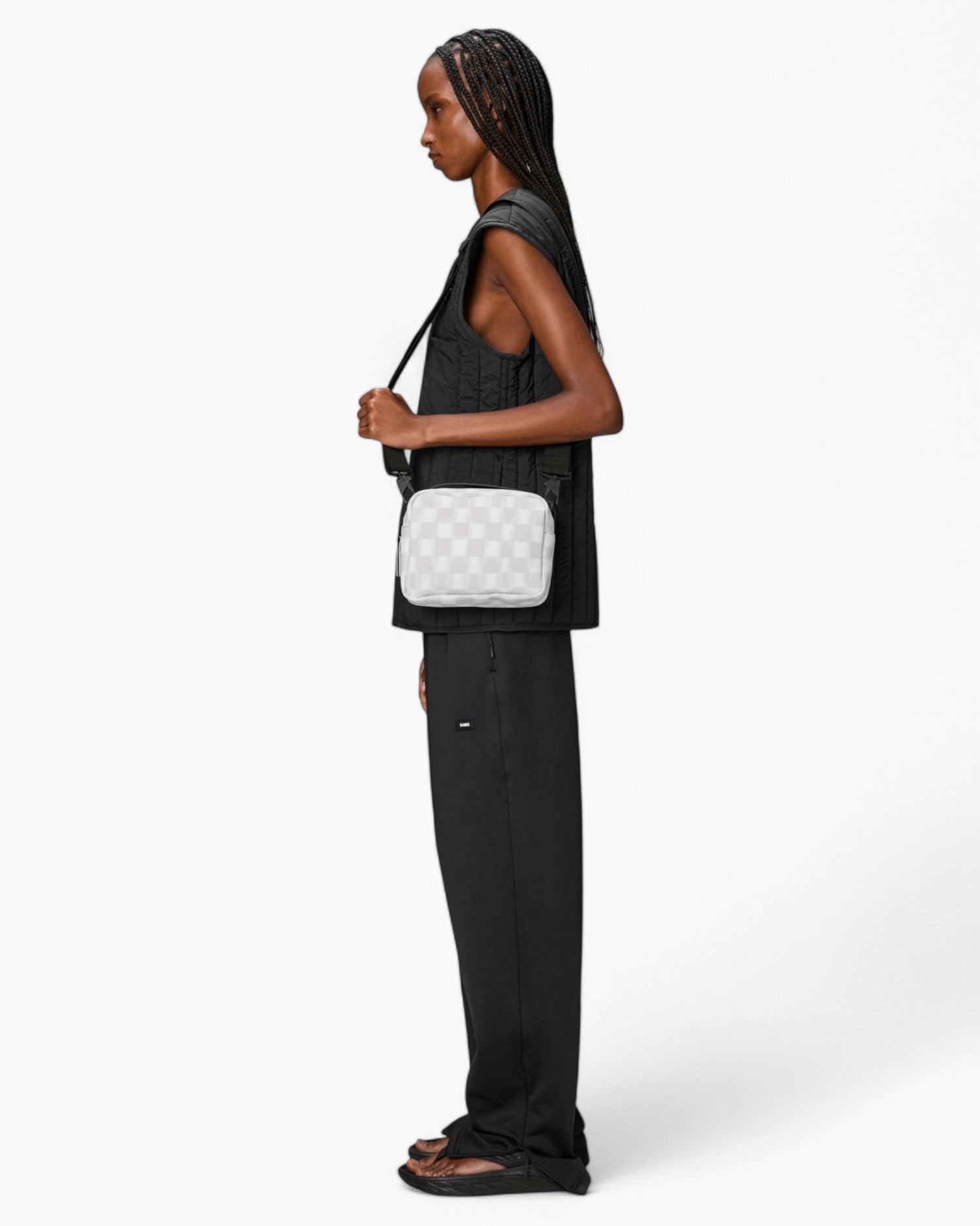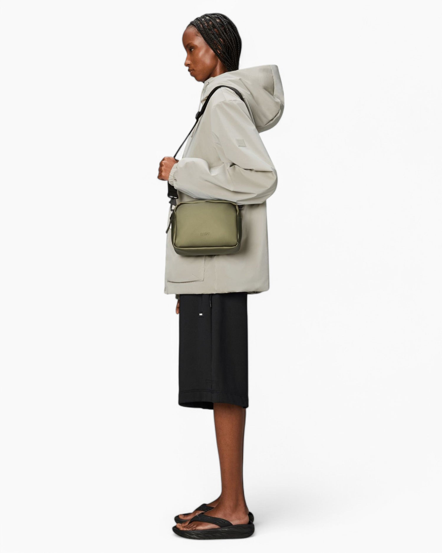Box Bag, omuzda, vücutta veya el çantası olarak taşınmak üzere tasarlanmış, temiz ama işlevsel bir su geçirmez çantadır. Minimal kutu silueti kolayca şekillendirilebilir, ek bir katmanı ile günlük ihtiyaçları taşımak için ideal bir boyuttur. Tasarım, karabinalarla bağlanan ayarlanabilir dokuma kayışla tamamlanır.
