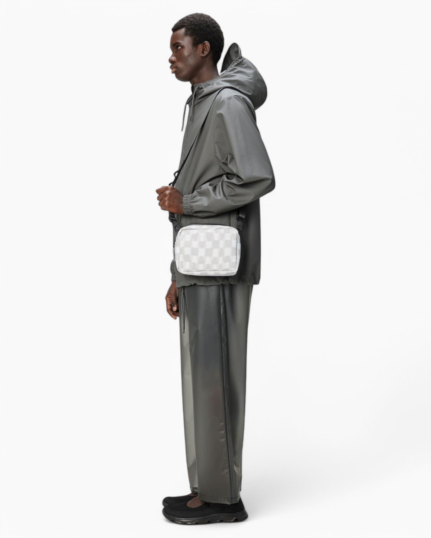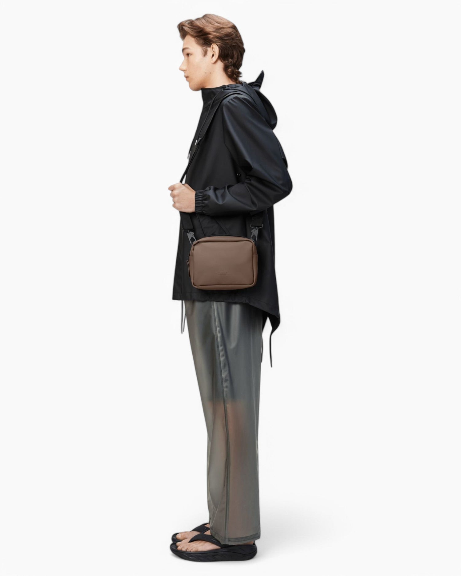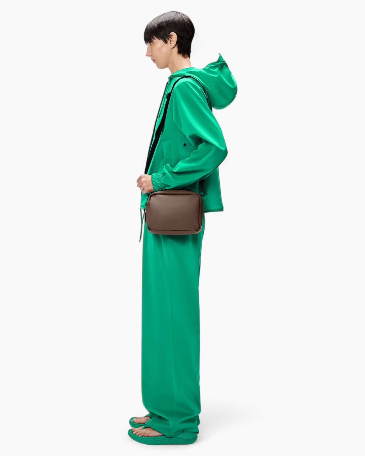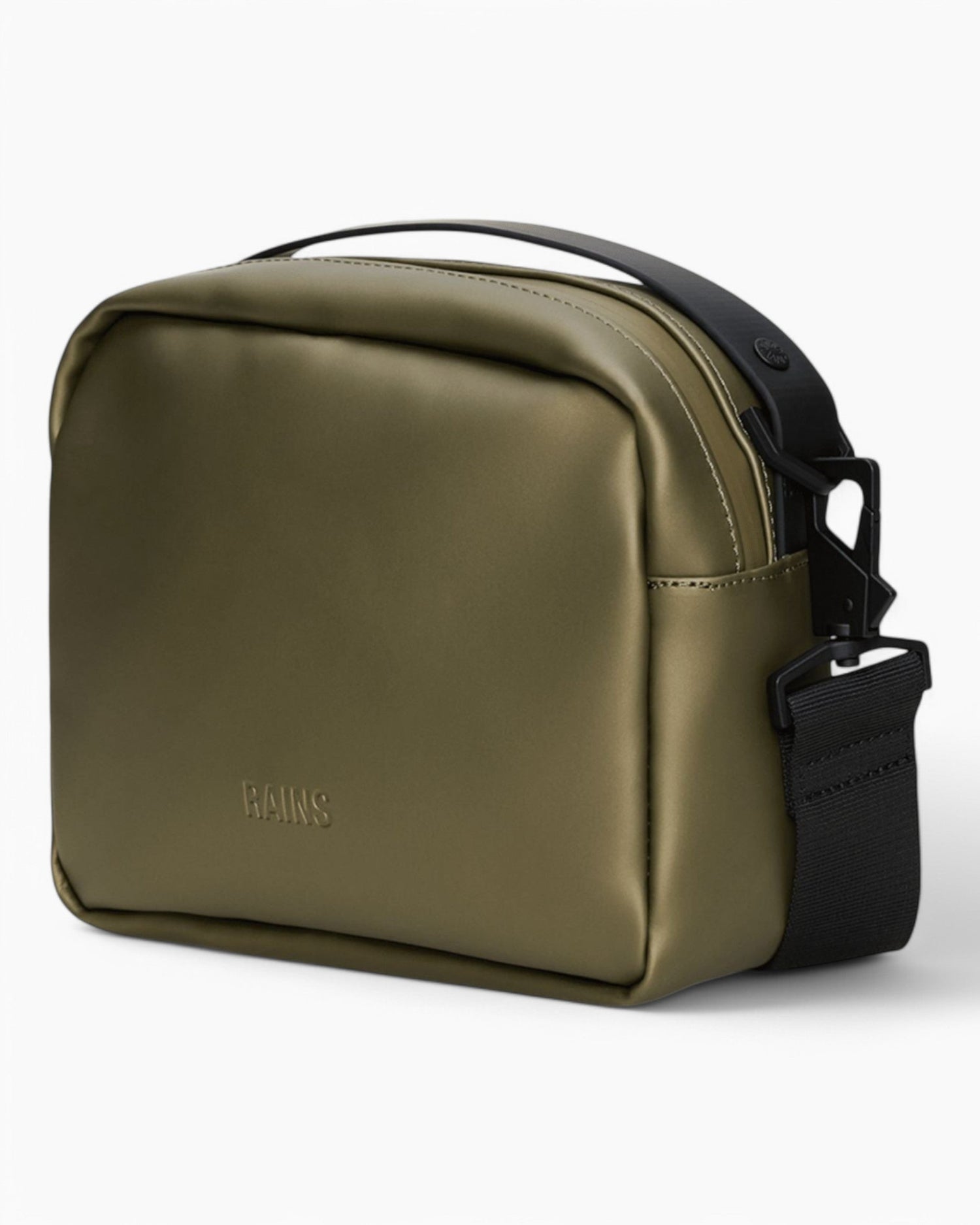 Box Bag, taşıma gücü, dayanıklılık ve pürüzsüz bir his için tasarlanmış Rains'in ikonikleşen PU kumaşından üretilmiştir.