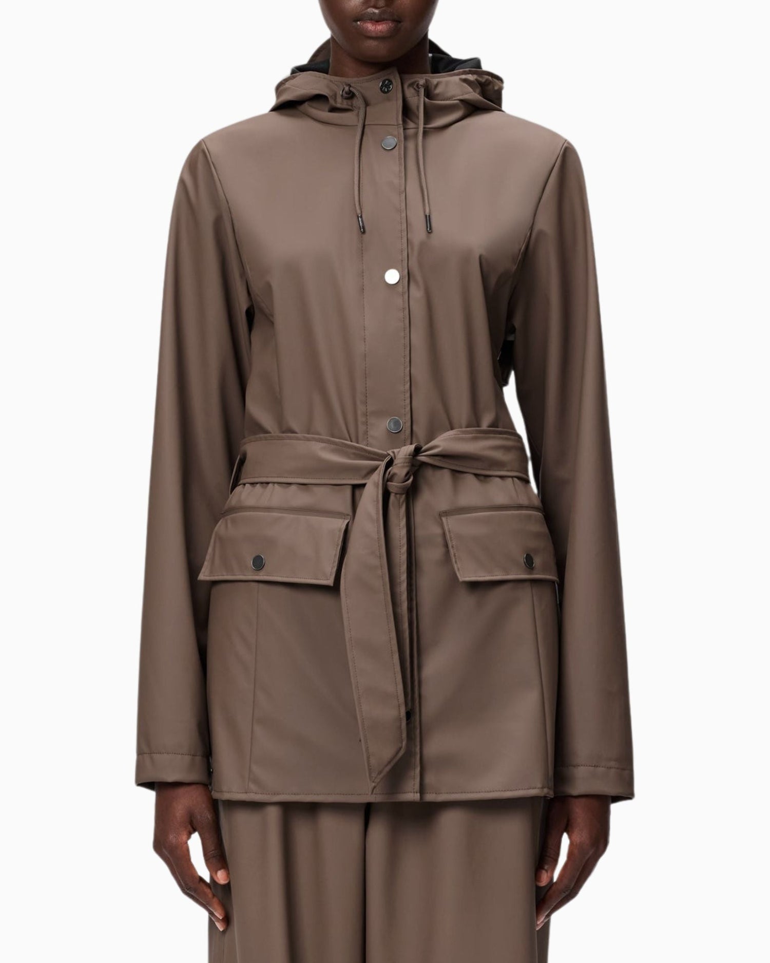 Klasik Curve Long Jacket modelinin kısa versiyonu. Bel hattını zarif bir şekilde vurgulayan kemer detayıyla tasarlanan bu model, suya, rüzgâra ve soğuğa karşı koruma sağlar.