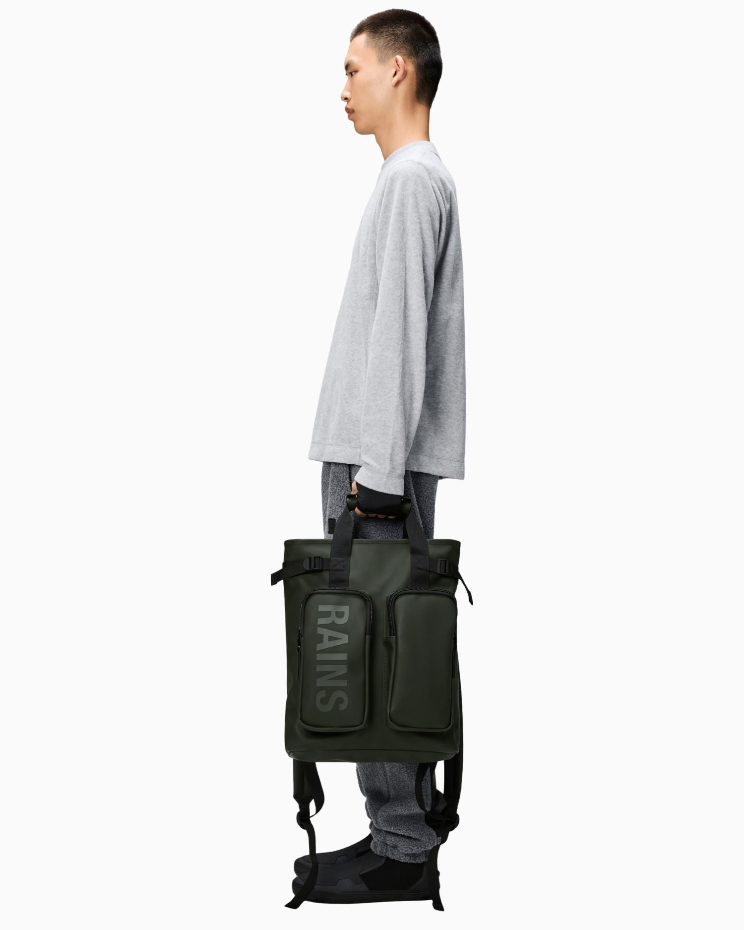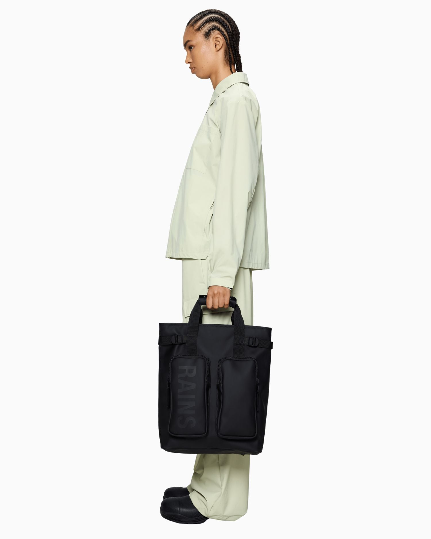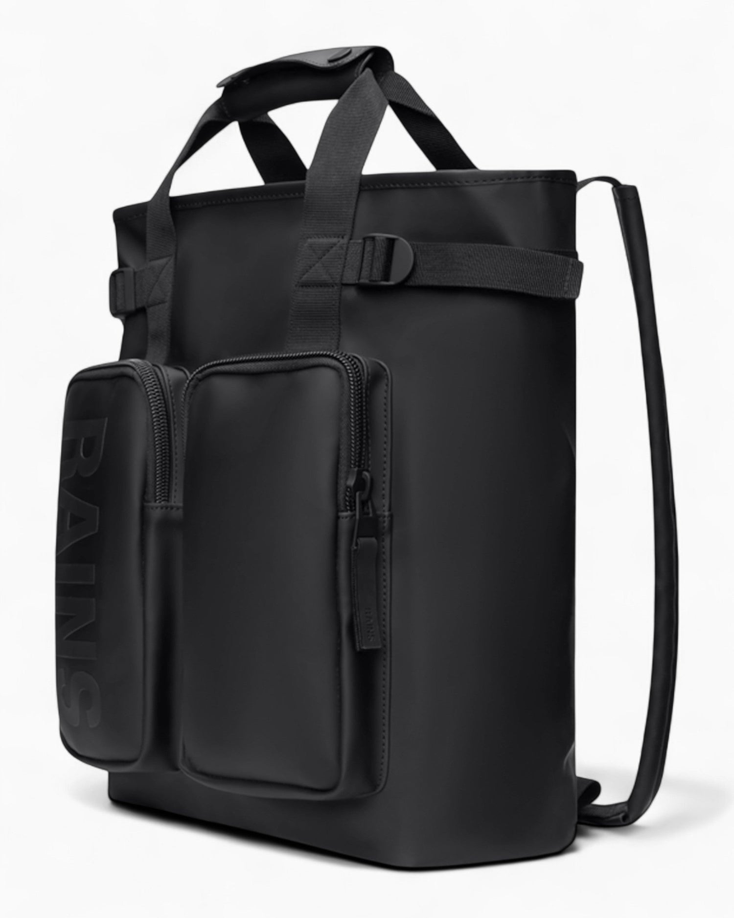 Fonksiyonelliği ve modern tasarımı bir araya getiren Texel Tote Sırt Çantası, kısa seyahatler ve şehir içi kullanım için tasarlanmış çok yönlü bir çanta. Suya dayanıklı PU kaplamalı Rains imza kumaşı, hem dayanıklılık hem de pürüzsüz bir dokunuş sunar.
