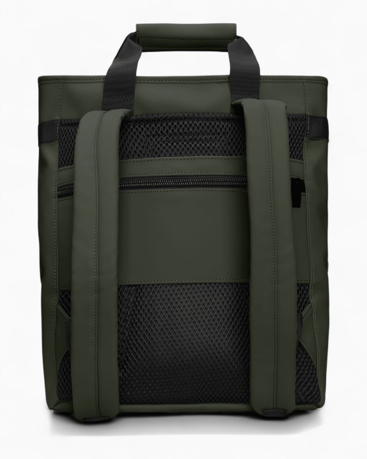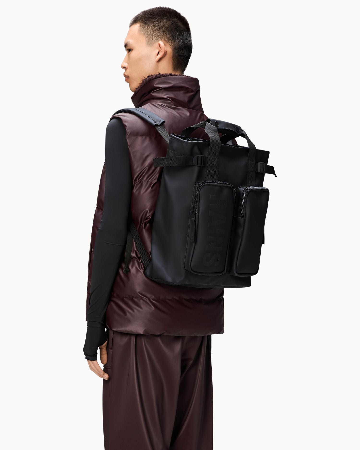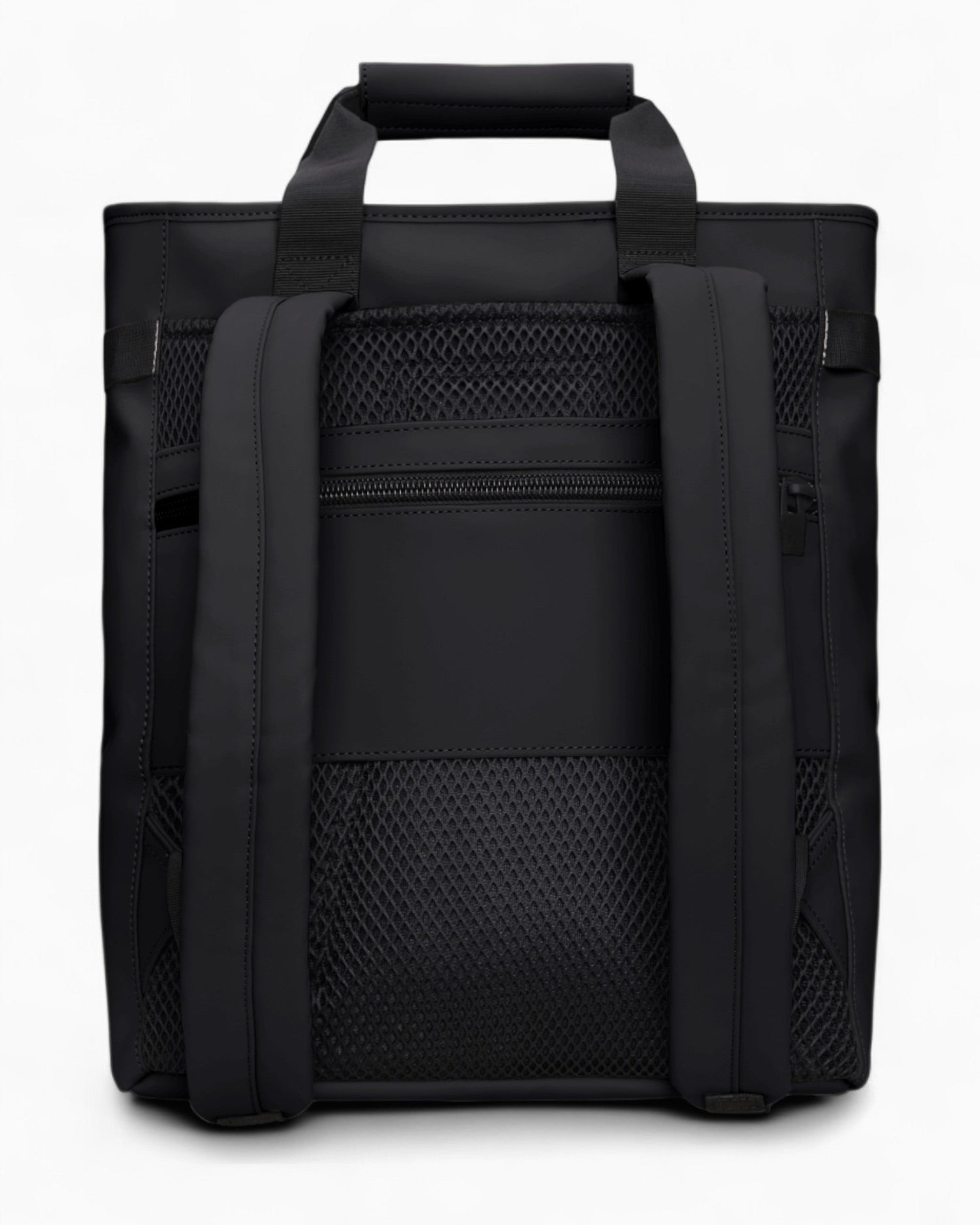 Fonksiyonelliği ve modern tasarımı bir araya getiren Texel Tote Sırt Çantası, kısa seyahatler ve şehir içi kullanım için tasarlanmış çok yönlü bir çanta. Suya dayanıklı PU kaplamalı Rains imza kumaşı, hem dayanıklılık hem de pürüzsüz bir dokunuş sunar.