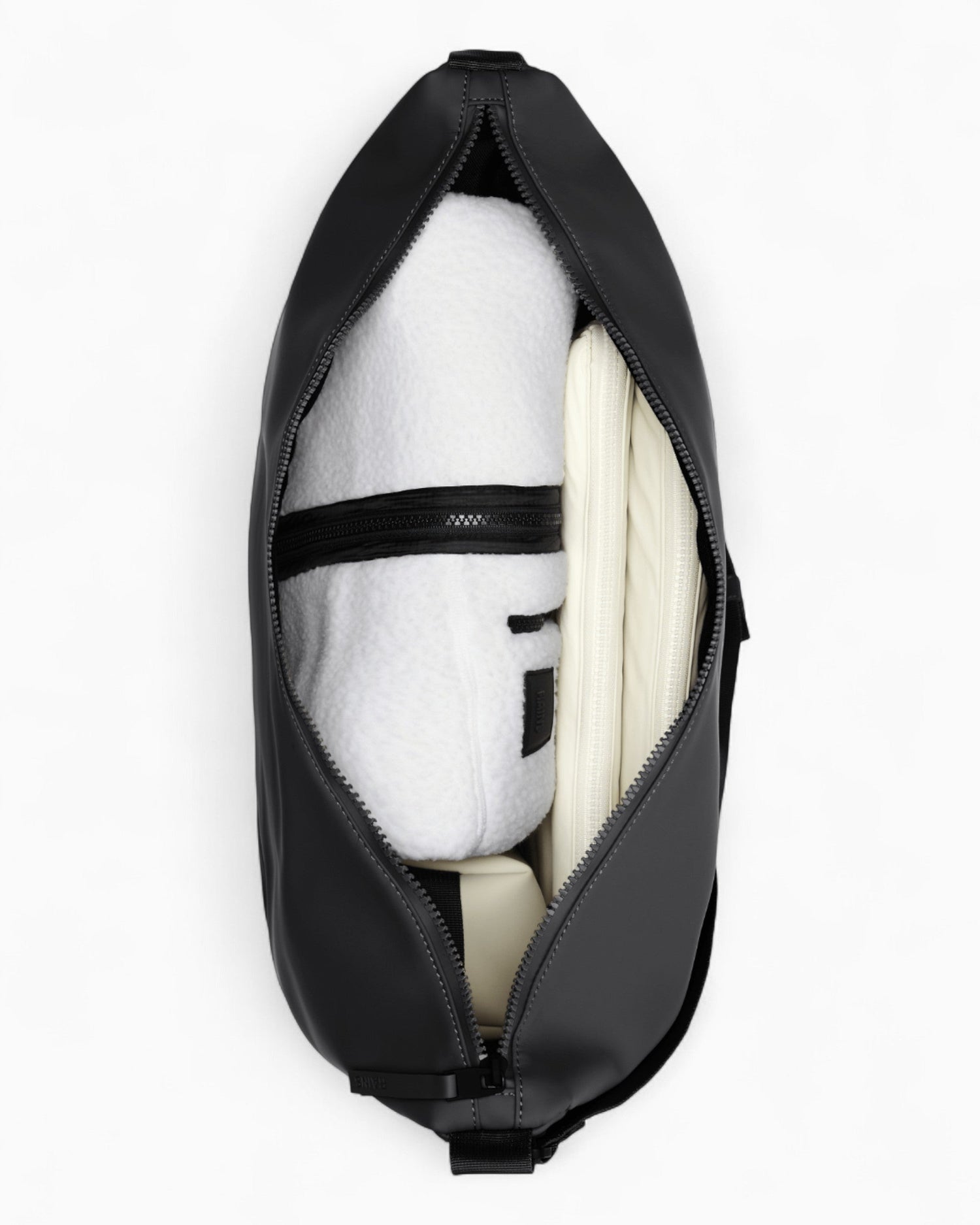 - Materyal: Rains’in imza PU kumaşı; suya dayanıklı kaplama ve yumuşak dokulu iç yüzey.