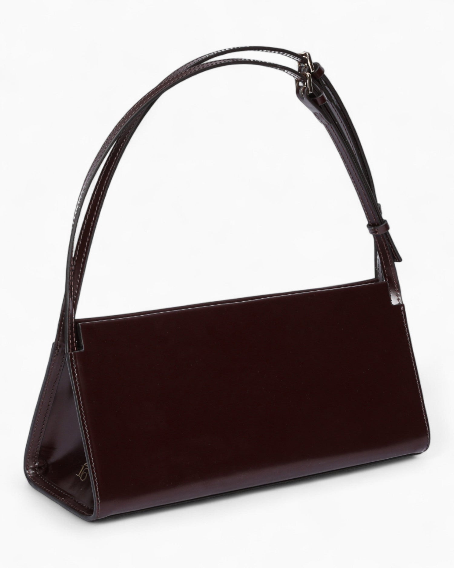 Eda Kadın Çanta, keskin hatları ve prizma formuyla güçlü bir duruş sergilerken, gündüzden geceye zahmetsizce uyum sağlar.