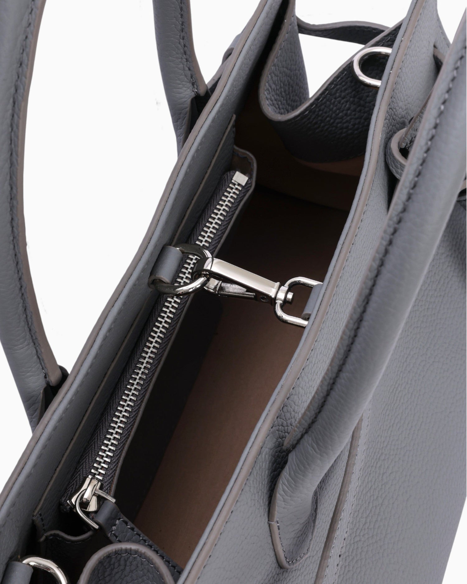 - Fermuarlı metal detaylı ana iç cep