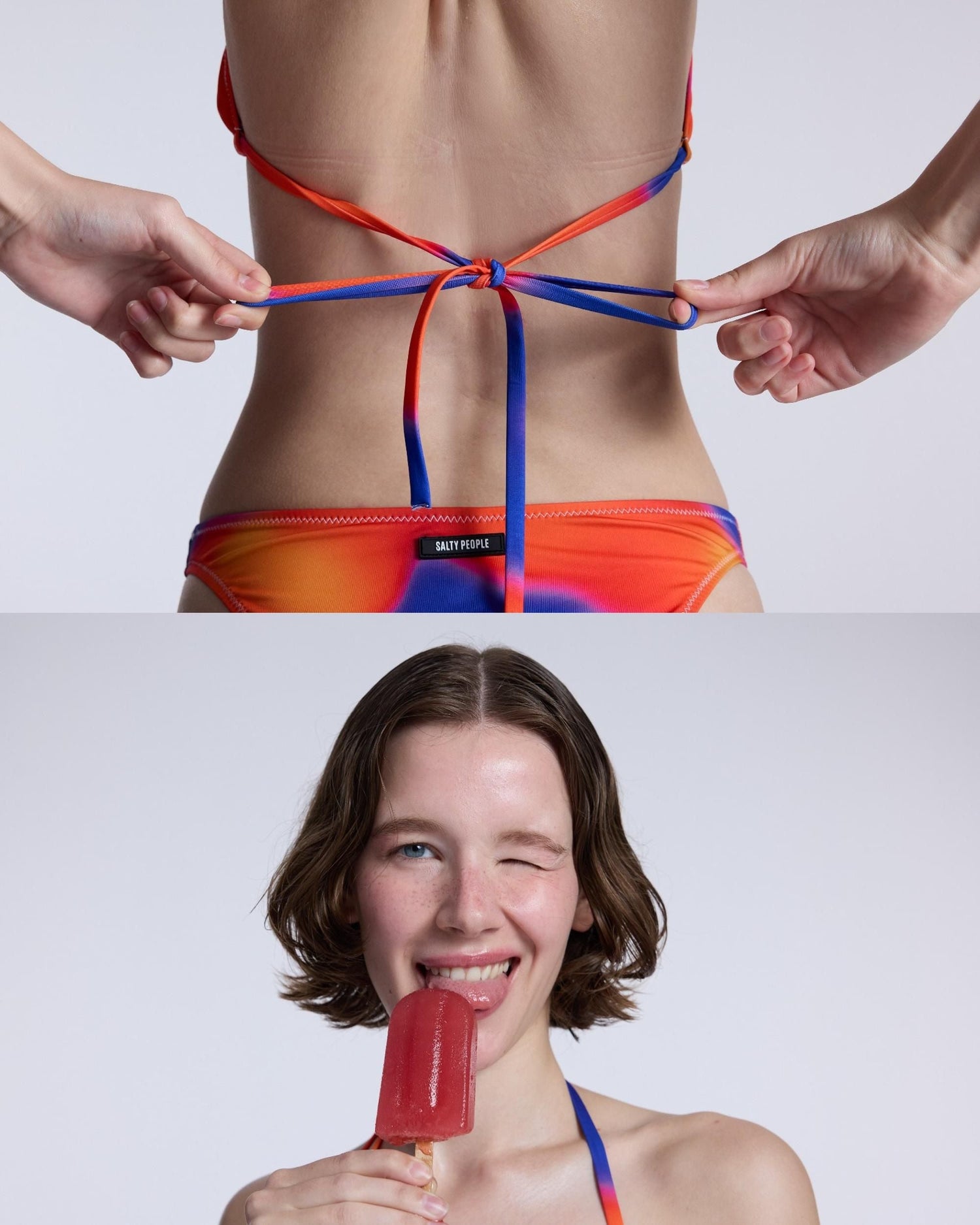 Alev deseninin sıcak tonlarıyla hareketlenen, tamamen ayarlanabilir Daily Salty Bikini Üstü, çift katlı astarlı yapısıyla hem dayanıklılık hem de konfor sunuyor. Canlı ve dinamik renkleriyle plajda tüm dikkatleri üzerine çekiyor. Kırmızının sıcak tonları maviyle göz alıcı bir geçiş sunuyor.