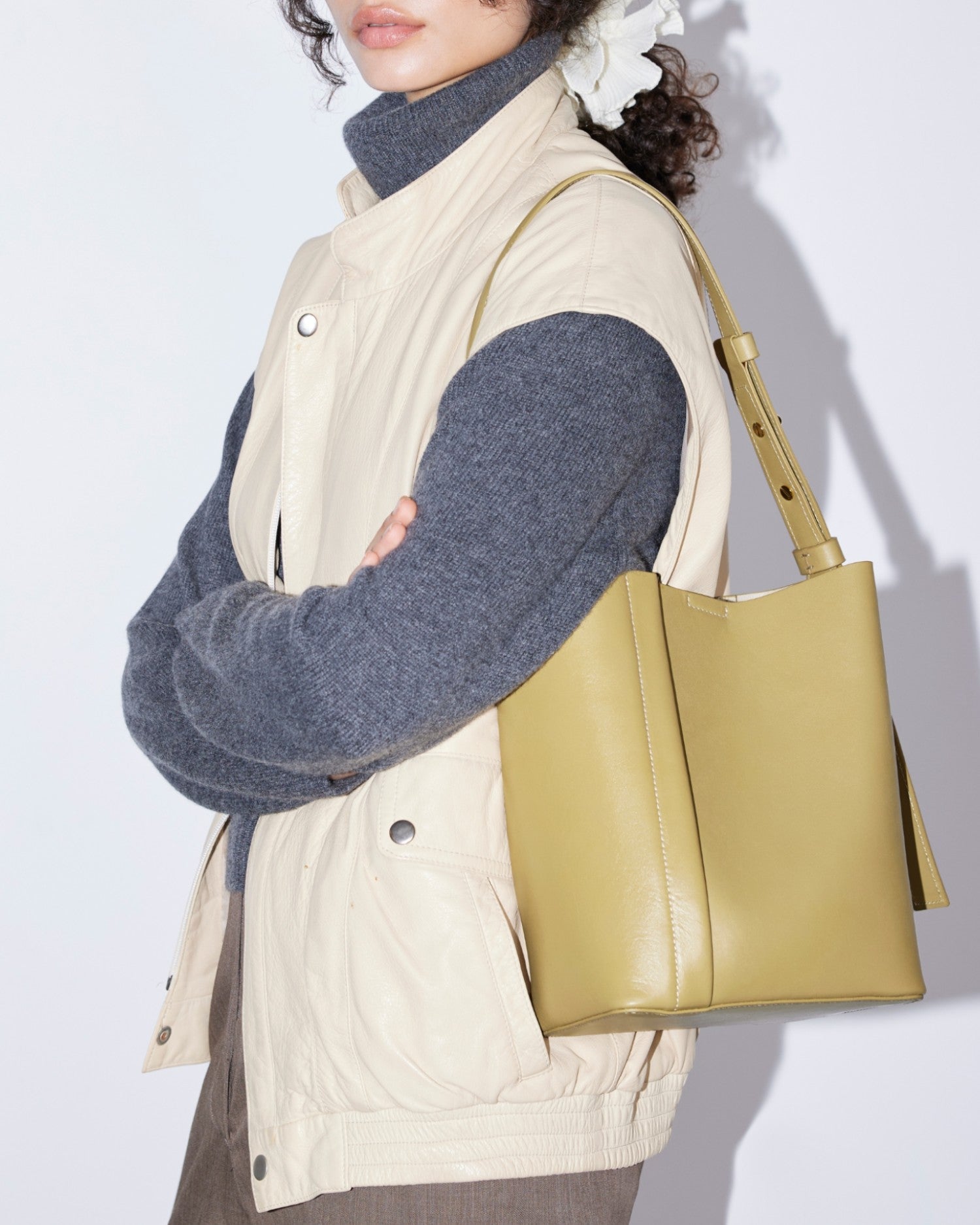 Medium Tote Plissé, çapraz simetrik pileli yapısı sayesinde kendine özgü bir form sunmaktadır. Dana derisinden üretilen çanta, kontrast dikiş detayları ve yan kısmında yer alan kabartmalı SAYÉS logosuyla dikkat çekmektedir. Ayarlanabilir omuz askısı ve gizli mıknatıslı kapama detayı ise hem şıklık hem de pratiklik sağlar.