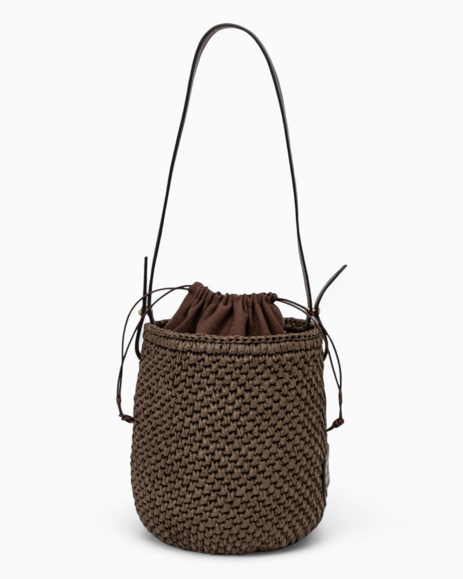 Kai Bucket Bag, geleneksel örgü tekniğiyle elde hazırlanmış yapısı ve vegatal deri detaylarıyla kombinlere doğal ama sofistike bir duruş kazandırıyor. Zamansız tasarımı ve modern siluetiyle günlük kombinlerine artisanal bir dokunuş ekliyor. Şehirde, sahilde ya da bir yaz akşamında, onunla her an fark yaratıyor.