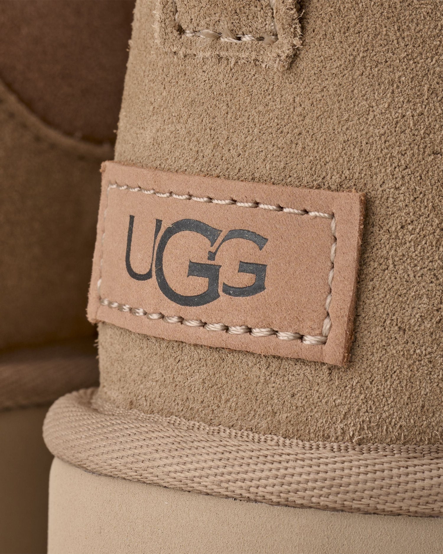 UGG’un en çok sevilen klasiklerinden biri: Classic Ultra Mini. Kısaltılmış bilek boyuyla kolayca giyilip çıkarılabilen bu model, ikonik Classic Boot’un tüm konforunu daha dinamik bir formda sunuyor. Ön işlemden geçirilmiş dış yüzeyi sayesinde uzun süre yeni gibi kalırken, yumuşacık UGG® koyun postu ve ultra hafif, esnek tabanıyla her adımda konfor sağlar. Kadın çalışanları destekleyen HERproject inisiyatifi kapsamında üretilen bu model, UGG’un tedarik zincirindeki kadınlara güç kazandırmak amacıyla geliştirdiği iş birliklerinin bir parçasıdır. Dayanıklı dış tabanı, iki farklı seçenekte sunuluyor: Fosil yakıt tüketimini azaltan şeker kamışından üretilmiş çevre dostu EVA veya UGG’un özel Treadlite teknolojisi.
