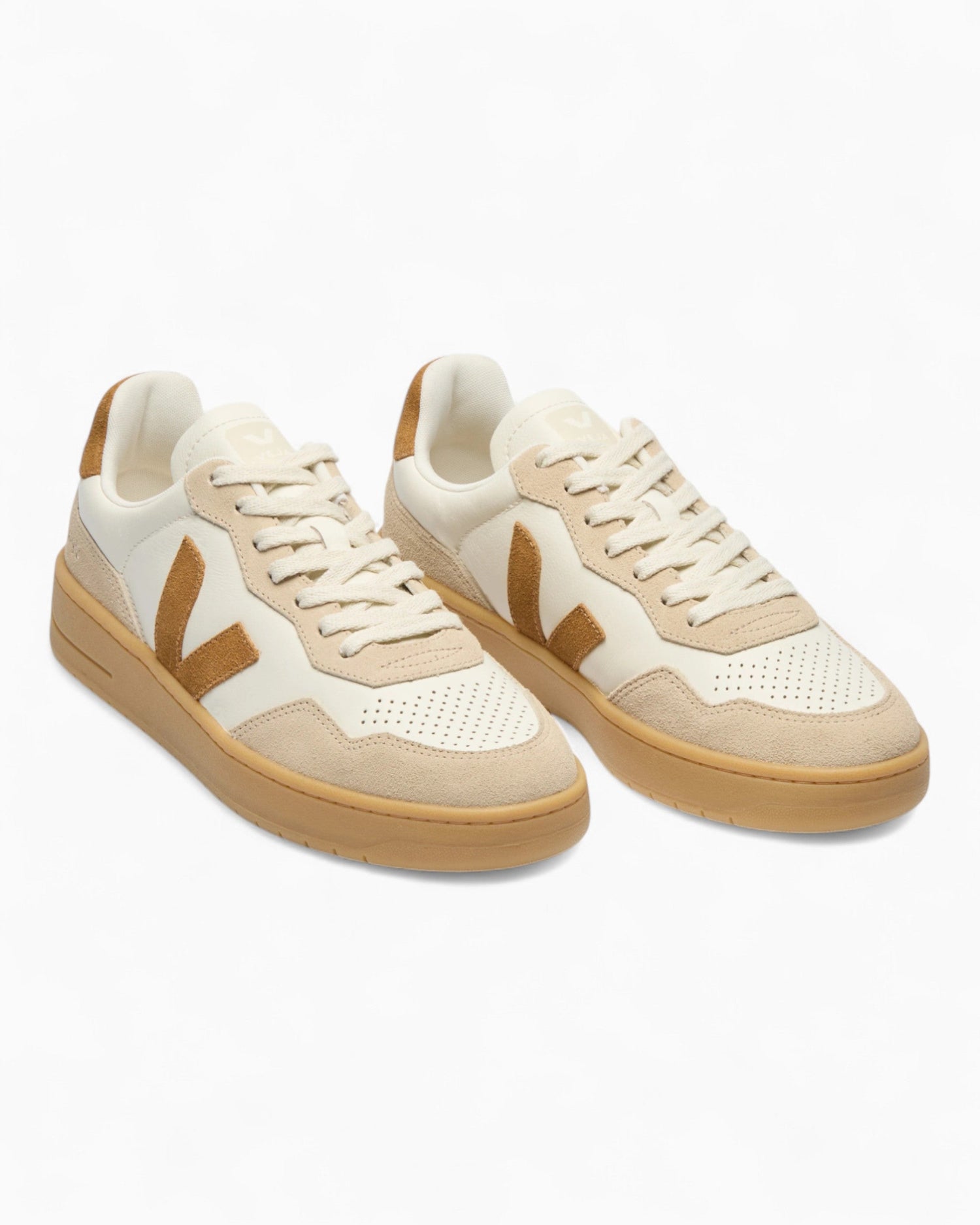 VEJA’nın en yeni silüeti V-90, konforlu teknik yapısının yanında hem retro hem de modern stiliyle 90'ların spor giyim kültürünü yeni dokunuşlarla birleştirerek stil ve konforu mükemmel bir dengeyle sunuyor.